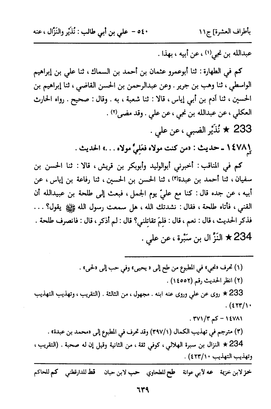 ـ النَّزَّالُ بْنُ سَبْرَةَ، عَنْ عَلِيٍّ