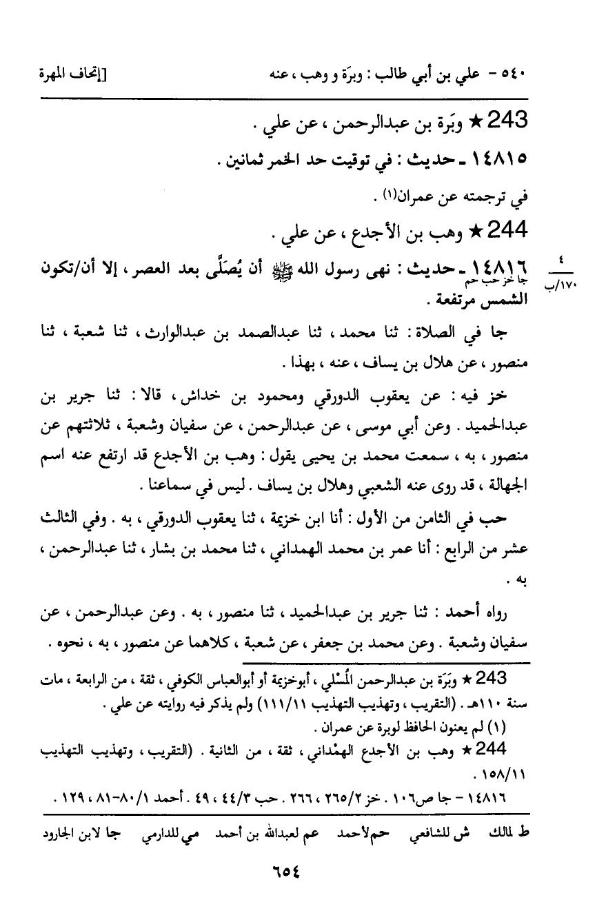 ـ وَهْبُ بْنُ الأَجْدَعِ، عَنْ عَلِيٍّ.