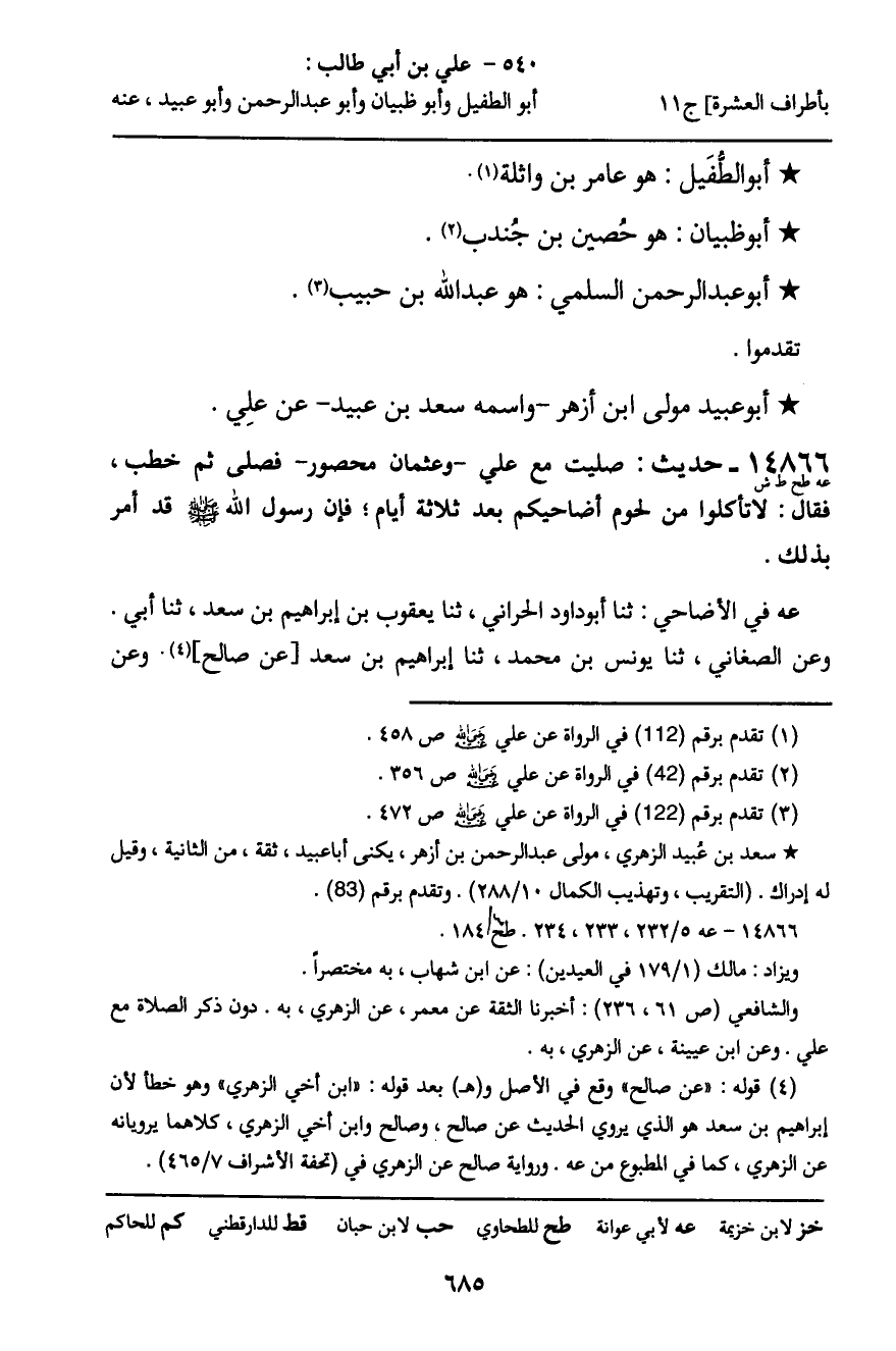 ـ أَبُو عُبَيْدٍ مَوْلَى ابْنِ أَزْهَرَ، وَاسْمُهُ سَعْدُ بْنُ عُبَيْدٍ، عَنْ عَلِيٍّ.