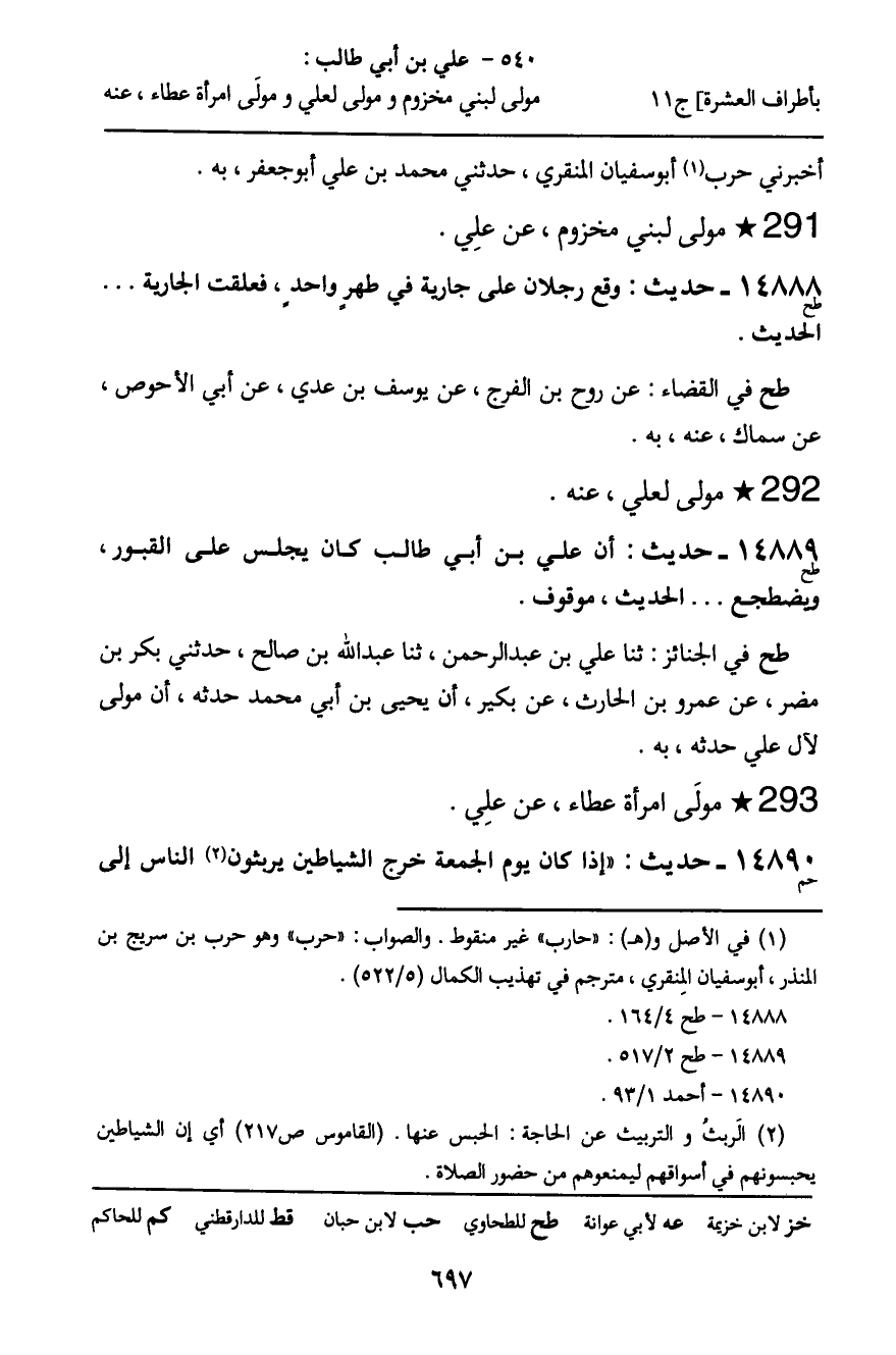 14889 - حَدِيثٌ (طح) : أَنَّ عَلِيَّ بْنَ أَبِي طَالِبٍ كَانَ يَجْلِسُ عَلَى الْقُبُورِ، وَيَضْطَجِعُ ... الْحَدِيثَ، مَوْقُوفٌ.