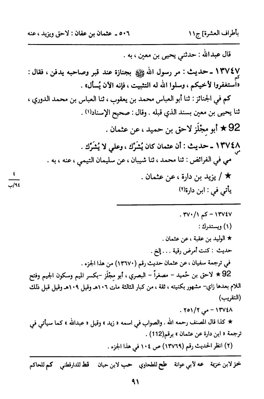 ـ أَبُو مِجْلَزٍ لاحِقُ بْنُ حُمَيْدٍ، عَنْ عُثْمَانَ.