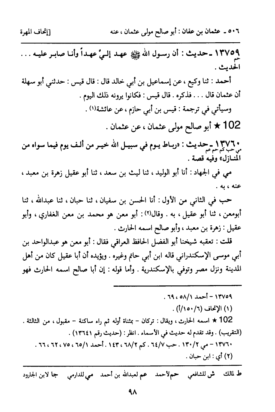 حب فِي الثَّانِي مِنَ الأَوَّلِ: أنا الْحَسَنُ بْنُ سُفْيَانَ، ثنا حِبَّانُ، ثنا عَبْدُ اللَّهِ، ثنا أَبُو مَعْنٍ، ثنا أَبُو عُقَيْلٍ، بِهِ. وَقَالَ: أَبُو مَعْنٍ: هُوَ مُحَمَّدُ بْنُ مَعْنٍ الْغِفَارِيُّ، وَأَبُو عُقَيْلٍ: زَهْرَةُ بْنُ مَعْبَدٍ، وَأَبُو صَالِحٍ اسْمُهُ: الْحَارِثُ.