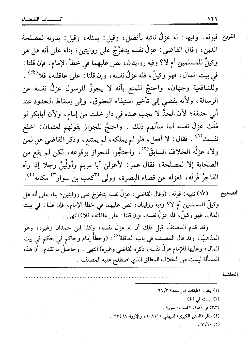 ـــــــــــــــــــــــــــــQتَنْبِيهٌ: قَوْلُهُ: وَقَالَ الْقَاضِي: عَزْلُ نَفْسِهِ يَتَخَرَّجُ عَلَى رِوَايَتَيْنِ بِنَاءً عَلَى أَنَّهُ هَلْ هُوَ وَكِيلٌ لِلْمُسْلِمِينَ أَمْ لَا؟ وَفِيهِ رِوَايَتَانِ نَصَّ عَلَيْهِمَا فِي خَطَإِ الْإِمَامِ فَإِنْ قُلْنَا فِي بَيْتِ الْمَالِ فَهُوَ وَكِيلٌ فَلَهُ عَزْلُ نَفْسِهِ وإن قلنا على عاقلته فلا انتهى.