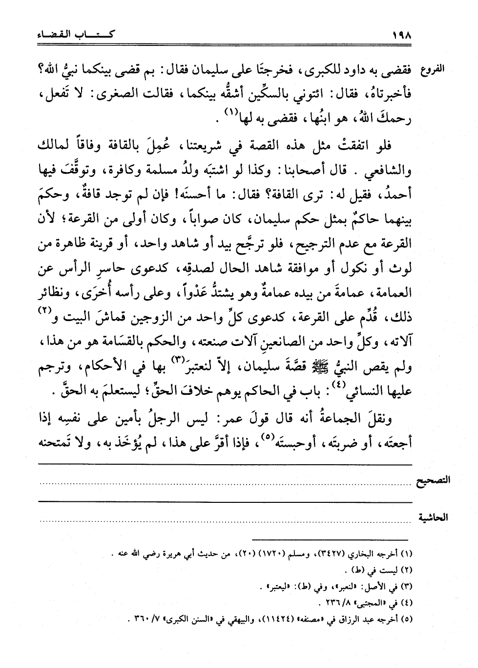 فَلَوْ اتَّفَقَتْ مِثْلُ هَذِهِ الْقِصَّةِ فِي شَرِيعَتِنَا عُمِلَ بِالْقَافَةِ وِفَاقًا لِمَالِكٍ وَالشَّافِعِيِّ قَالَ أَصْحَابُنَا: وَكَذَا لَوْ اشْتَبَهَ وَلَدُ مُسْلِمَةٍ وَكَافِرَةٍ وَتَوَقَّفَ فِيهَا أَحْمَدُ فَقِيلَ لَهُ: تَرَى الْقَافَةَ؟ فَقَالَ: مَا أُحْسِنُهُ فَإِنْ لَمْ تُوجَدْ قَافَةٌ وَحَكَمَ بَيْنَهُمَا حَاكِمٌ بِمِثْلِ حُكْمِ سُلَيْمَانَ كَانَ صَوَابًا وَكَانَ أَوْلَى مِنْ الْقُرْعَةِ لِأَنَّ الْقُرْعَةَ مَعَ عَدَمِ التَّرْجِيحِ فَلَوْ تَرَجَّحَ بِيَدٍ أَوْ شَاهِدٍ وَاحِدٍ أَوْ قَرِينَةٍ ظَاهِرَةٍ مِنْ لَوْثٍ أَوْ نُكُولٍ أَوْ مُوَافَقَةِ شَاهِدِ الْحَالِ لِصِدْقِهِ كَدَعْوَى حَاسِرِ الرَّأْسِ عَنْ الْعِمَامَةِ عِمَامَةَ مَنْ بِيَدِهِ عِمَامَةٌ وَهُوَ يَشْتَدُّ عَدْوًا وَعَلَى رَأْسِهِ أُخْرَى وَنَظَائِرُ ذَلِكَ قُدِّمَ عَلَى الْقُرْعَةِ كَدَعْوَى كُلِّ وَاحِدٍ مِنْ الزَّوْجَيْنِ قُمَاشَ الْبَيْتِ و2 آلاته وَكُلِّ وَاحِدٍ مِنْ الصَّانِعِينَ آلَاتِ صَنْعَتِهِ وَالْحُكْمُ بِالْقَسَامَةِ هُوَ مِنْ هَذَا وَلَمْ يَقُصَّ النَّبِيُّ صَلَّى اللَّهُ عَلَيْهِ وَسَلَّمَ قِصَّةَ سُلَيْمَانَ إلَّا لِيُعْتَبَرَ3 بِهَا فِي الْأَحْكَامِ وَتَرْجَمَ عَلَيْهَا النَّسَائِيُّ4: بَابٌ فِي الْحَاكِمِ يُوهِمُ خِلَافَ الْحَقِّ لِيَسْتَعْلِمَ بِهِ الْحَقَّ.
