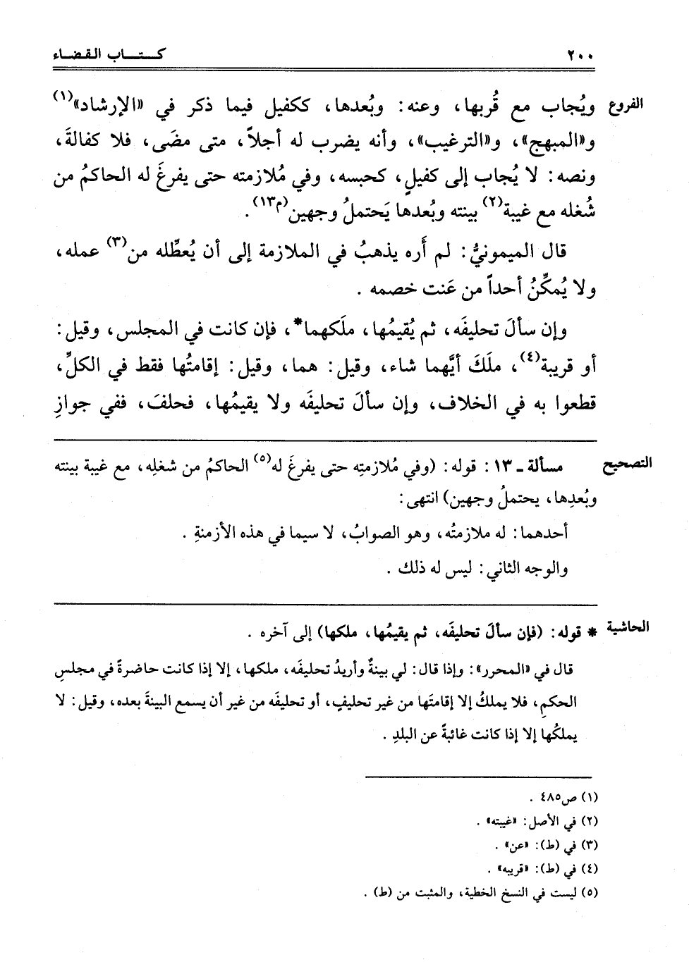 ـــــــــــــــــــــــــــــQمَسْأَلَةٌ 13: قَوْلُهُ: وَفِي مُلَازَمَتِهِ حَتَّى يَفْرُغَ لَهُ5 الْحَاكِمُ مِنْ شُغْلِهِ مَعَ غَيْبَةِ بَيِّنَتِهِ وَبَعْدَهَا يَحْتَمِلُ وَجْهَيْنِ. انْتَهَى: