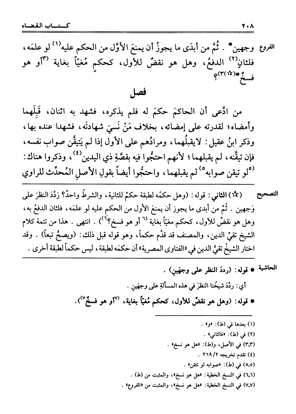 ـــــــــــــــــــــــــــــQالثَّانِي: قَوْلُهُ: وَهَلْ حُكْمُهُ لِطَبَقَةٍ حُكْمٌ لِلثَّانِيَةِ وَالشَّرْطُ وَاحِدٌ؟ رَدَّدَ النَّظَرَ عَلَى وَجْهَيْنِ ثُمَّ من أبدى ما يجوز أن يمنع الأول مِنْ الْحُكْمِ عَلَيْهِ لَوْ عَلِمَهُ فَلِثَانٍ الدَّفْعُ بِهِ وَهَلْ هُوَ نَقْضٌ لِلْأَوَّلِ كَحُكْمٍ مُغَيًّا بغاية "4أو هُوَ فَسْخٌ4" انْتَهَى. هَذَا مِنْ تَتِمَّةِ كَلَامِ الشَّيْخِ تَقِيِّ الدِّينِ وَالْمُصَنَّفُ قَدْ قَدَّمَ حُكْمًا وَهُوَ قَوْلُهُ قَبْلَ ذَلِكَ وَيَصِحُّ تَبَعًا وَقَدْ اخْتَارَ الشَّيْخُ تَقِيُّ الدِّينِ فِي الْفَتَاوَى الْمِصْرِيَّةِ أَنَّ حُكْمَهُ لِطَبَقَةٍ لَيْسَ حُكْمًا لِطَبَقَةٍ أُخْرَى.