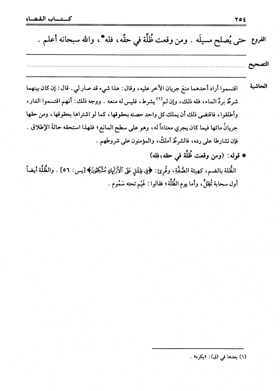 حَتَّى يُصْلِحَ مَسِيلَهُ وَمَنْ وَقَعَتْ ظُلَّةٌ فِي حَقِّهِ فَلَهُ. وَاَللَّهُ سُبْحَانَهُ أَعْلَمُ.