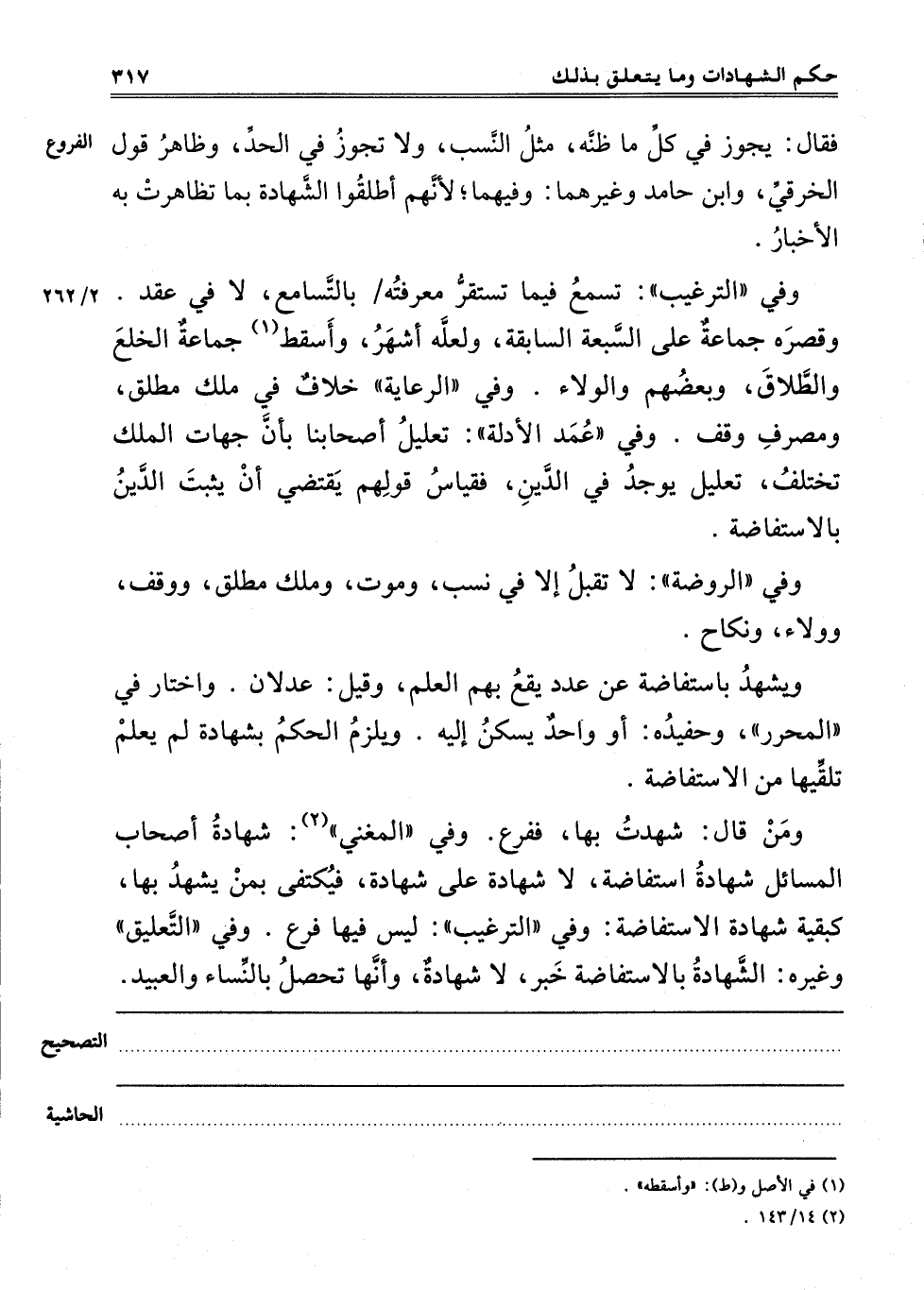 وَمَنْ قَالَ شَهِدَتْ بِهَا فَفَرْعٌ. وَفِي الْمُغْنِي2: شَهَادَةُ أَصْحَابِ الْمَسَائِلِ شَهَادَةُ اسْتِفَاضَةٍ لَا شَهَادَةٌ عَلَى شَهَادَةٍ فَيَكْتَفِي بِمَنْ يَشْهَدُ بِهَا كَبَقِيَّةِ شَهَادَةِ الِاسْتِفَاضَةِ. وَفِي التَّرْغِيبِ: لَيْسَ فِيهَا فَرْعٌ. وَفِي التَّعْلِيقِ وَغَيْرِهِ: الشَّهَادَةُ بِالِاسْتِفَاضَةِ خَبَرٌ لَا شَهَادَةٌ وَأَنَّهَا تَحْصُلُ بالنساء والعبيد.