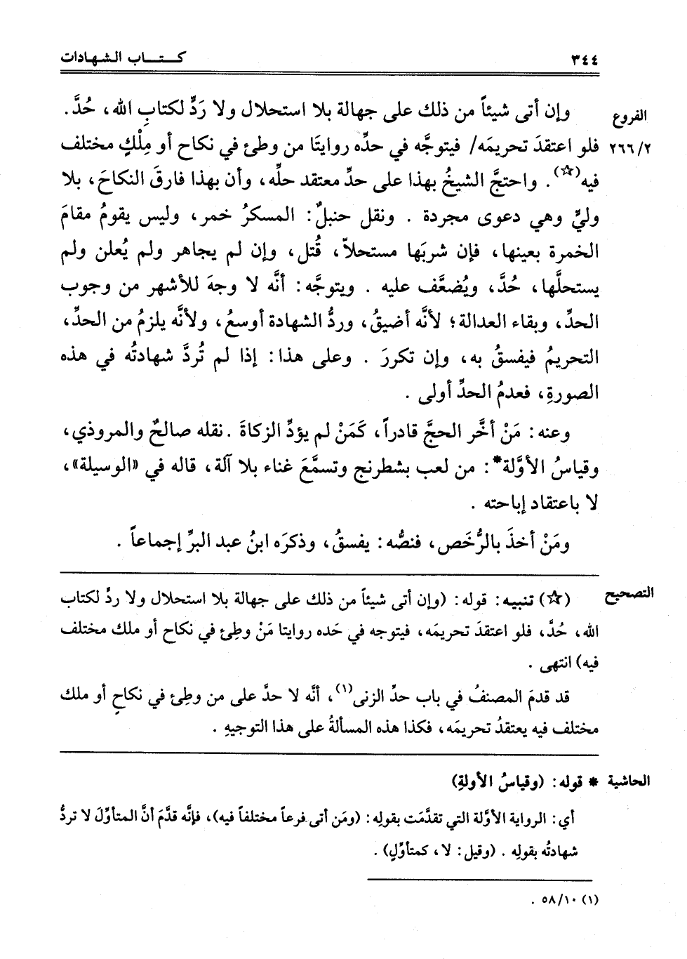 وَإِنْ أَتَى شَيْئًا مِنْ ذَلِكَ عَلَى جَهَالَةٍ بِلَا اسْتِحْلَالٍ وَلَا رَدٍّ لِكِتَابِ اللَّهِ حُدَّ فَلَوْ اعْتَقَدَ تَحْرِيمَهُ فَيُتَوَجَّهُ فِي حَدِّهِ رِوَايَتَانِ مَنْ وَطِئَ فِي نِكَاحٍ أَوْ مِلْكٍ مُخْتَلَفٍ فيه واحتج الشَّيْخُ بِهَذَا عَلَى حَدِّ مُعْتَقِدِ حِلِّهِ وَأَنَّ بِهَذَا فَارَقَ النِّكَاحَ بِلَا وَلِيٍّ وَهِيَ دَعْوَى مُجَرَّدَةٌ وَنَقَلَ حَنْبَلٌ: الْمُسْكِرُ خَمْرٌ وَلَيْسَ يَقُومُ مَقَامَ الْخَمْرَةِ بِعَيْنِهَا فَإِنْ شَرِبَهَا مُسْتَحِلًّا قُتِلَ. وَإِنْ لَمْ يُجَاهِرْ وَلَمْ يُعْلِنْ وَلَمْ يَسْتَحِلَّهَا حُدَّ وَيُضَعَّفُ عَلَيْهِ وَيُتَوَجَّهُ أَنَّهُ لَا وَجْهَ لِلْأَشْهَرِ مِنْ وُجُوبِ الْحَدِّ وَبَقَاءِ الْعَدَالَةِ لِأَنَّهُ أَضْيَقَ وَرَدُّ الشَّهَادَةِ أَوْسَعُ وَلِأَنَّهُ يَلْزَمُ مِنْ الْحَدِّ التَّحْرِيمُ فَيَفْسُقُ بِهِ أَوْ إنْ تَكَرَّرَ وَعَلَى هَذَا إذَا لَمْ تُرَدَّ شَهَادَتُهُ فِي هَذِهِ الصُّورَةِ فَعَدَمُ الْحَدِّ أَوْلَى.