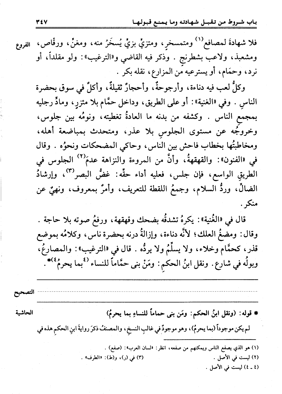 وَكُلُّ لَعِبٍ فِيهِ دَنَاءَةٌ وَأُرْجُوحَةٌ وَأَحْجَارٌ ثَقِيلَةٌ وَأَكْلٍ فِي سُوقٍ بِحَضْرَةِ النَّاسِ. وَفِي الْغُنْيَةِ: أَوْ عَلَى الطَّرِيقِ وَدَاخِلَ حَمَّامٍ بِلَا مِئْزَرٍ وَمَادٍّ رِجْلَيْهِ بِمَجْمَعِ النَّاسِ وَكَشْفِهِ مِنْ بَدَنِهِ مَا الْعَادَةُ تَغْطِيَتُهُ وَنَوْمِهِ بَيْنَ جُلُوسٍ وَخُرُوجِهِ عَنْ مُسْتَوَى الْجُلُوسِ بِلَا عُذْرٍ وَمُتَحَدِّثٍ بِمُبَاضَعَةِ أَهْلِهِ وَمُخَاطَبَتِهَا بِخِطَابٍ فَاحِشٍ بَيْنَ النَّاسِ وَحَاكِي الْمُضْحِكَاتِ وَنَحْوِهِ. وَقَالَ فِي الْفُنُونِ; وَالْقَهْقَهَةُ وَأَنَّ مِنْ الْمُرُوءَةِ وَالنَّزَاهَةِ عَدَمَ2 الْجُلُوسِ فِي الطَّرِيقِ الْوَاسِعِ فَإِنْ جَلَسَ فَعَلَيْهِ أَدَاءُ حَقِّهِ: غض البصر3 وَإِرْشَادُ الضَّالِّ وَرَدُّ السَّلَامِ وَجَمْعُ اللُّقَطَةِ لِلتَّعْرِيفِ وَأَمْرٌ بِمَعْرُوفٍ وَنَهْيٌ عَنْ مُنْكِرٍ.