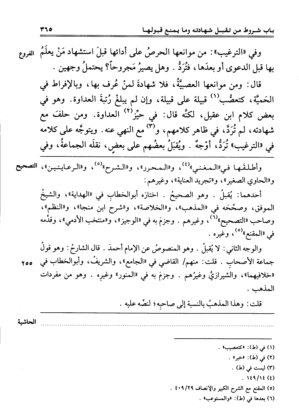 وَفِي التَّرْغِيبِ: مِنْ مَوَانِعِهَا الْحِرْصُ عَلَى أَدَائِهَا قَبْلَ اسْتِشْهَادِ مَنْ يَعْلَمُ بِهَا قَبْلَ الدَّعْوَى أَوْ بَعْدَهَا فَتُرَدُّ. وَهَلْ يَصِيرُ مَجْرُوحًا؟ يَحْتَمِلُ وَجْهَيْنِ. قَالَ: وَمِنْ مَوَانِعِهَا الْعَصَبِيَّةُ فَلَا شَهَادَةَ لمن عرف بها وبالإفراط في الحمية كتعصب قَبِيلَةٍ عَلَى قَبِيلَةٍ وَإِنْ لَمْ يَبْلُغْ رُتْبَةَ الْعَدَاوَةِ. وَهُوَ فِي بَعْضِ كَلَامِ ابْنِ عَقِيلٍ لَكِنَّهُ قَالَ فِي خَبَرِ الْعَدَاوَةِ وَمَنْ حَلَفَ مَعَ شَهَادَتِهِ لَمْ تُرَدَّ فِي ظَاهِرِ كَلَامِهِمْ مَعَ النَّهْي عَنْهُ وَيُتَوَجَّهُ عَلَى كَلَامِهِ فِي التَّرْغِيبِ: تُرَدُّ أَوْ وَجْهٌ. وَيُقْبَلُ بَعْضُهُمْ عَلَى بعض نقله الجماعة وفي