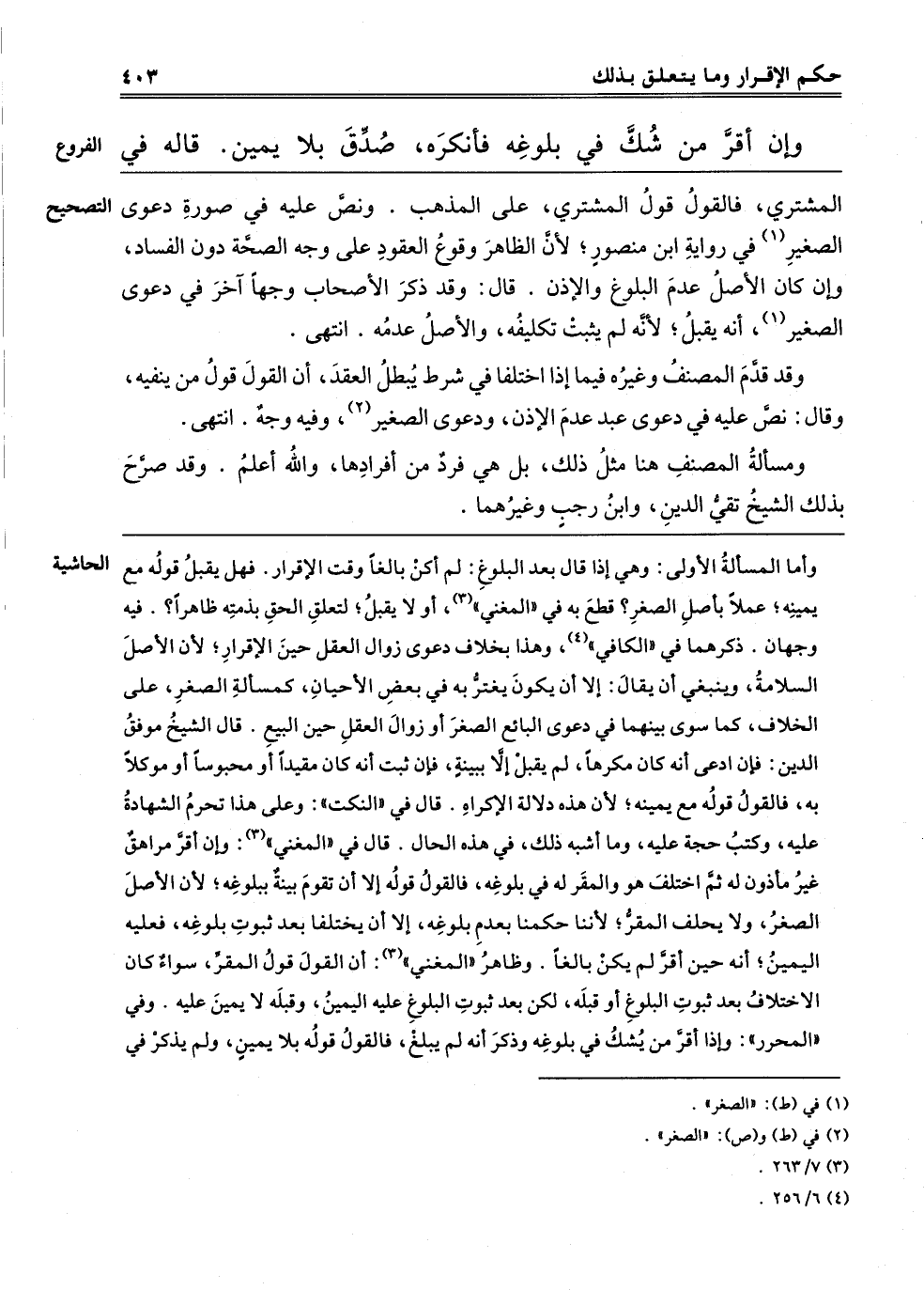 ـــــــــــــــــــــــــــــQالْمُشْتَرِي فَالْقَوْلُ قَوْلُ الْمُشْتَرِي عَلَى الْمَذْهَبِ وَنَصَّ عليه في صورة دعوى الصغير1 فِي رِوَايَةِ ابْنِ مَنْصُورٍ لِأَنَّ الظَّاهِرَ وُقُوعُ الْعُقُودِ عَلَى وَجْهِ الصِّحَّةِ دُونَ الْفَسَادِ وَإِنْ كَانَ الْأَصْلُ عَدَمَ الْبُلُوغِ وَالْإِذْنِ قَالَ: وَقَدْ ذكر الأصحاب وجها آخر في دعوى الصغير"1" أَنَّهُ يُقْبَلُ لِأَنَّهُ لَمْ يَثْبُتْ تَكْلِيفُهُ وَالْأَصْلُ عَدَمُهُ انْتَهَى.