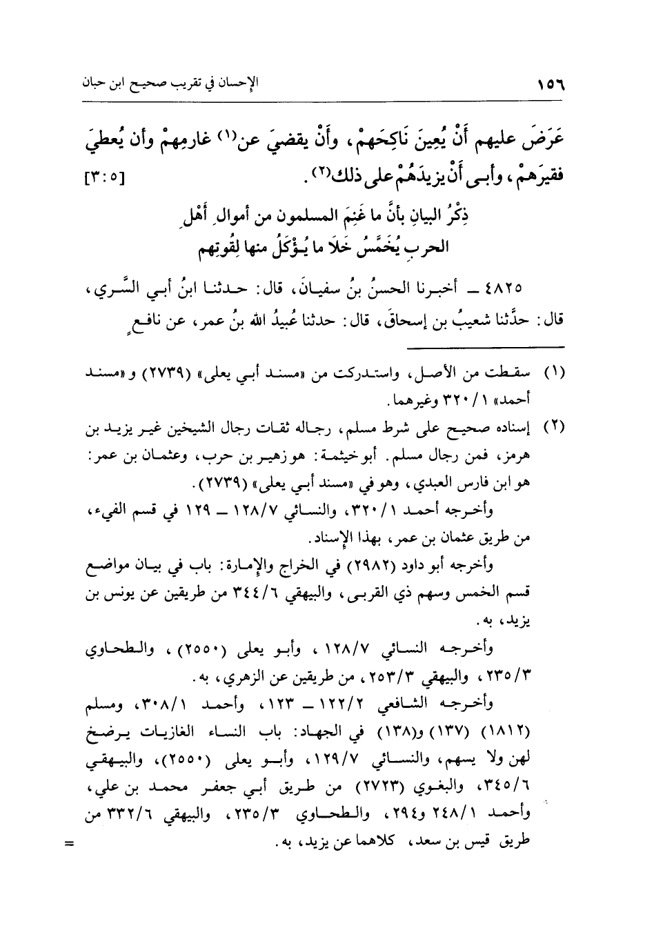 وأخرجه أحمد 1/320، والنسائي 7/128-129 في قسم الفيء، من طريق عثمان بن عمر، بهذا الإسناد.
