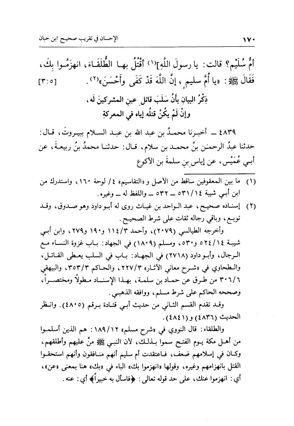 4839 - أَخْبَرَنَا مُحَمَّدُ بْنُ عَبْدِ اللَّهِ بْنِ عَبْدِ السَّلَامِ، بِبَيْرُوتَ قَالَ: حَدَّثَنَا عَبْدُ الرَّحْمَنِ بْنُ مُحَمَّدِ بْنِ سَلَّامٍ، قَالَ: حَدَّثَنَا مُحَمَّدُ بْنُ رَبِيعَةَ، عَنْ أَبِي عُمَيْسٍ، عَنْ إِيَاسِ بْنِ سَلَمَةَ بْنِ الْأَكْوَعِ،