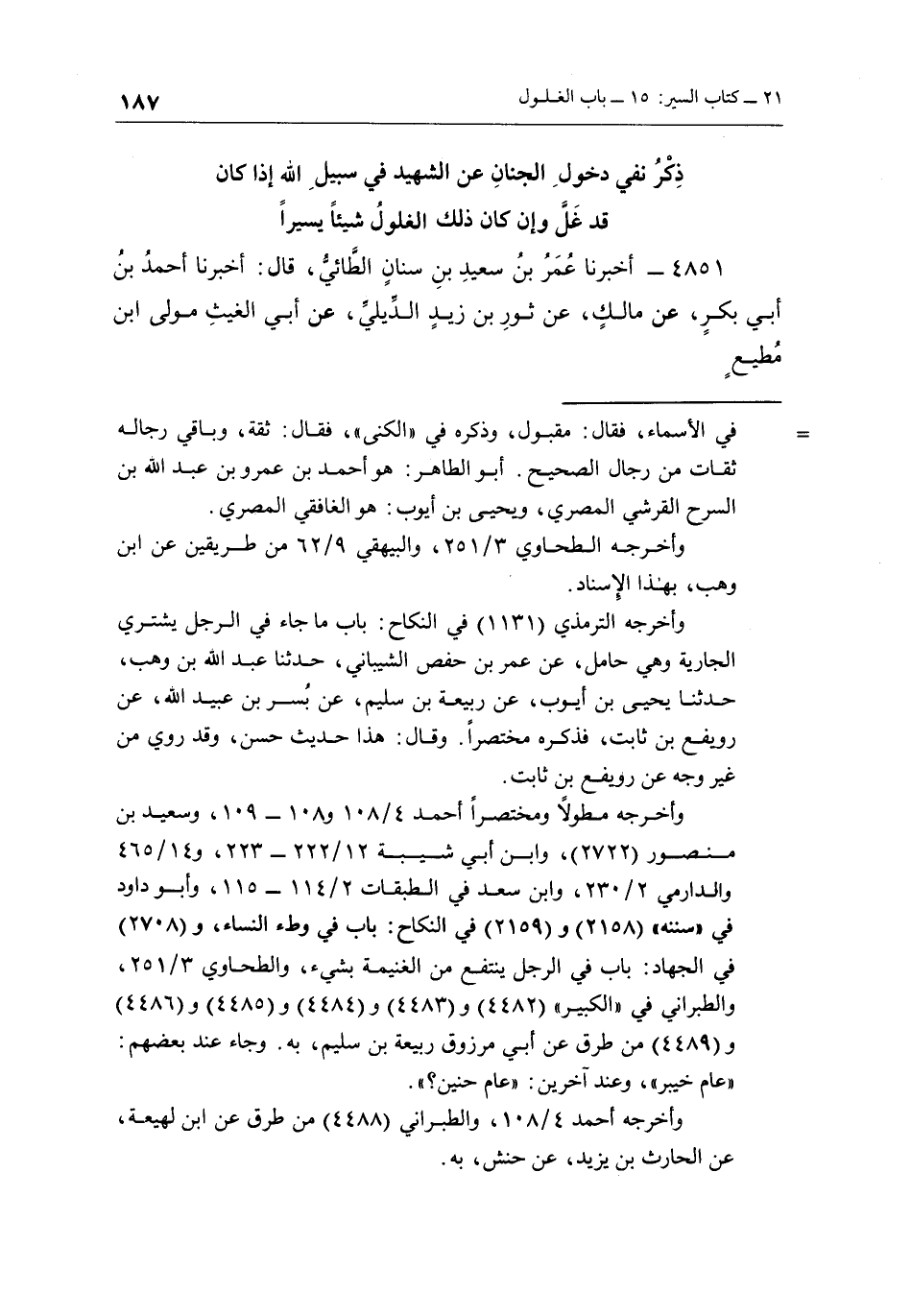 = في الأسماء فقال: مقبول، وذكره في " الكنى "، فقال: ثقة، وباقي رجاله ثقات من رجال الصحيح. أبو الطاهر: هو أحمد بن عمرو بن عبد الله بن السرح القرشي المصري، ويحيى بن أيوب: هو الغافقي المصري.