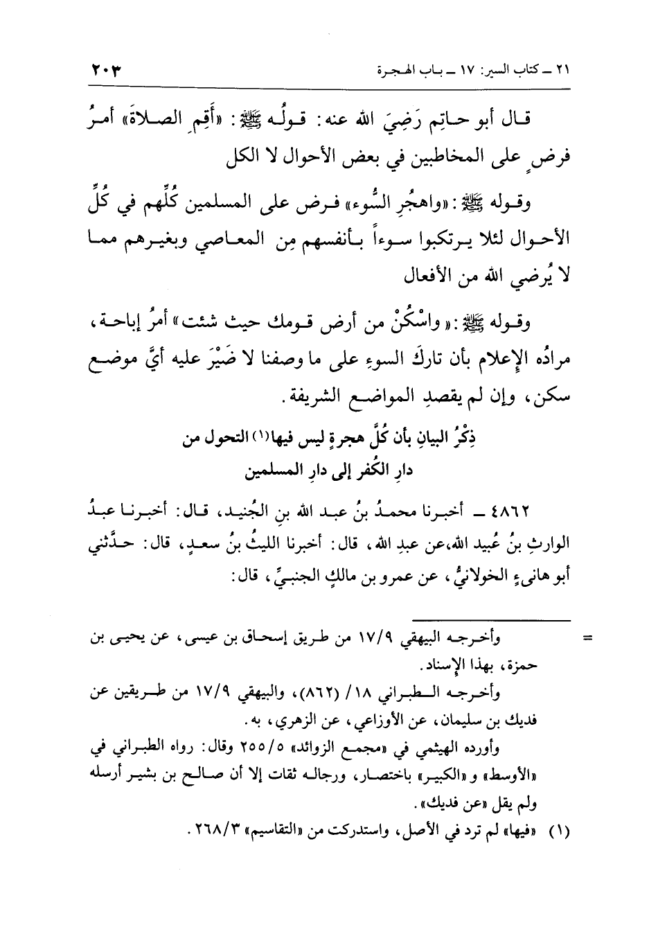 ذِكْرُ الْبَيَانِ بِأَنَّ كُلَّ هِجْرَةٍ لَيْسَ فِيهَا (¬1) التَّحَوُّلُ مِنْ دَارِ الْكُفْرِ إِلَى دَارِ الْمُسْلِمِينَ