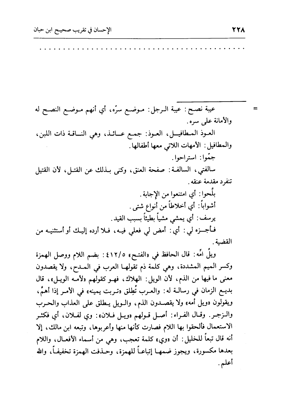 ويلُ أمَّه: قال الحافظ فى " الفتح 5/412: بضم اللام ووصل الهمزة وكسر الميم المشددة، وهي كلمة ذم تقولها العرب في المدح، ولا يقصدون معنى ما فيها من الذم، لأن الويل: الهلاك، فهو كقولهم " لأمه الويل "، قال بديع الزمان في رسالة له: والعرب تُطِلق " تربت يمينه " في الأمر إذا أهمَّ، ويقولون " ويل أمه " ولا يقصدون الذم، والويل يطلق على العذاب والحرب والزجر. وقال الفراء: أصل قولهم " ويل فلان ": وي لفلان، أي فكثر الاستعمال فألحقوا بها اللام فصارت كأنها منها وأعربوها، وتبعه ابن مالك، إلا أنه قال تبعاً للخليل: أن " وي " كلمة تعجب، وهي من أسماء الأفعال، واللام بعدها مكسورة، ويجوز ضمها إتباعاً للهمزة وحذفت الهمزة تخفيفاً، والله أعلم.