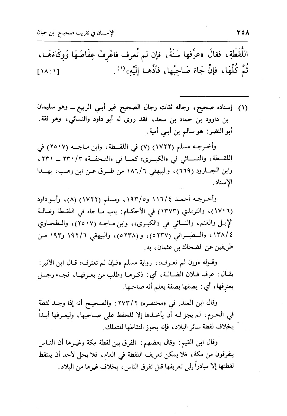 وأخرجه أحمد 4/116 و5/193، ومسلم "1722" "8"، وأبو داود "1706"، والترمذي "1373" في الأحكام: باب ما جاء في اللقطة وضالة الإبل والغنم، والنسائي في "الكبرى"، وابن ماجه "2507"، والطحاوي 4/138، والطبراني "5237"، و5238"، والبيهقي 6/192 و193 من طريقين عن الضحاك بن عثمان، به.