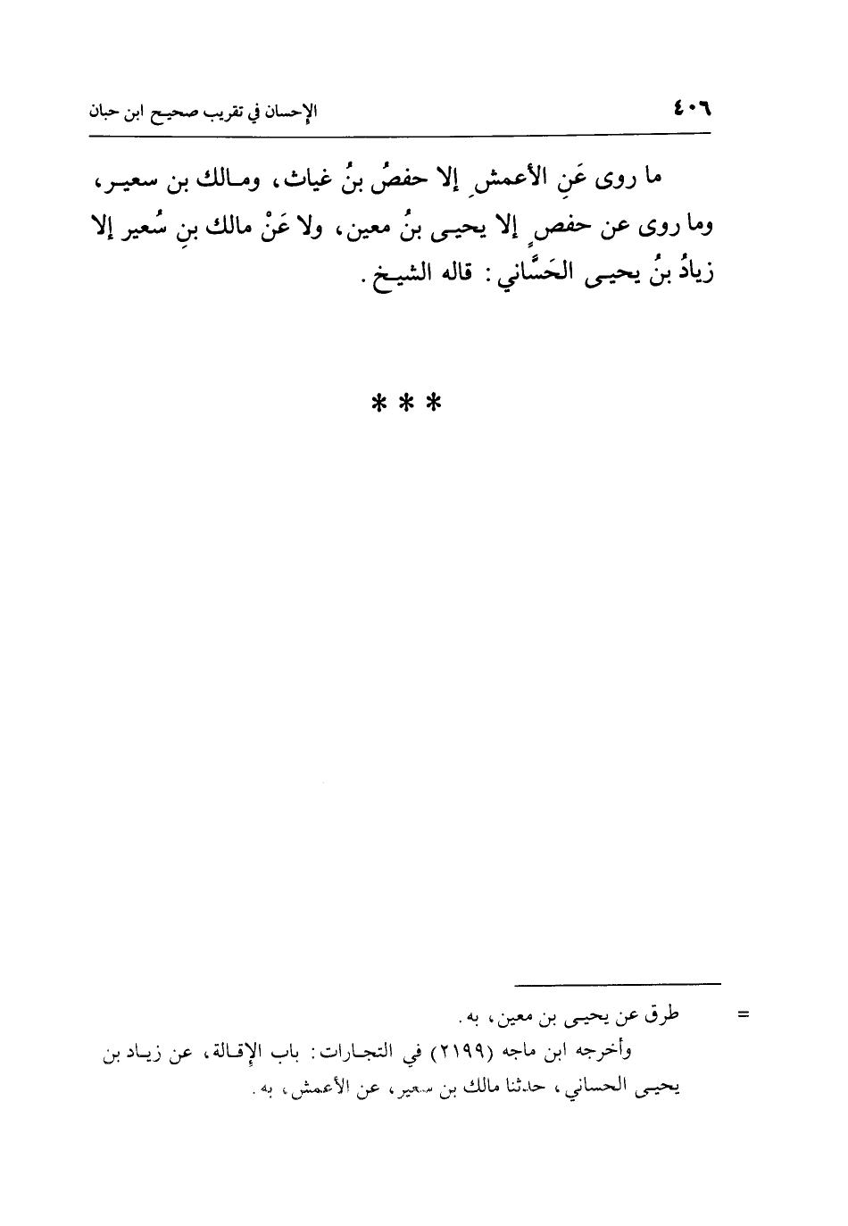 مَا رَوَى عَنِ الْأَعْمَشِ إِلَّا حَفْصُ بْنُ غِيَاثٍ، وَمَالِكُ بْنُ سُعَيْرٍ، وَمَا رَوَى عَنْ حَفْصٍ إِلَّا يَحْيَى بْنُ مَعِينٍ، وَلَا عَنْ مَالِكِ بْنِ سُعَيْرٍ إِلَّا زِيَادُ بْنُ يَحْيَى الحساني: قاله الشيخ.