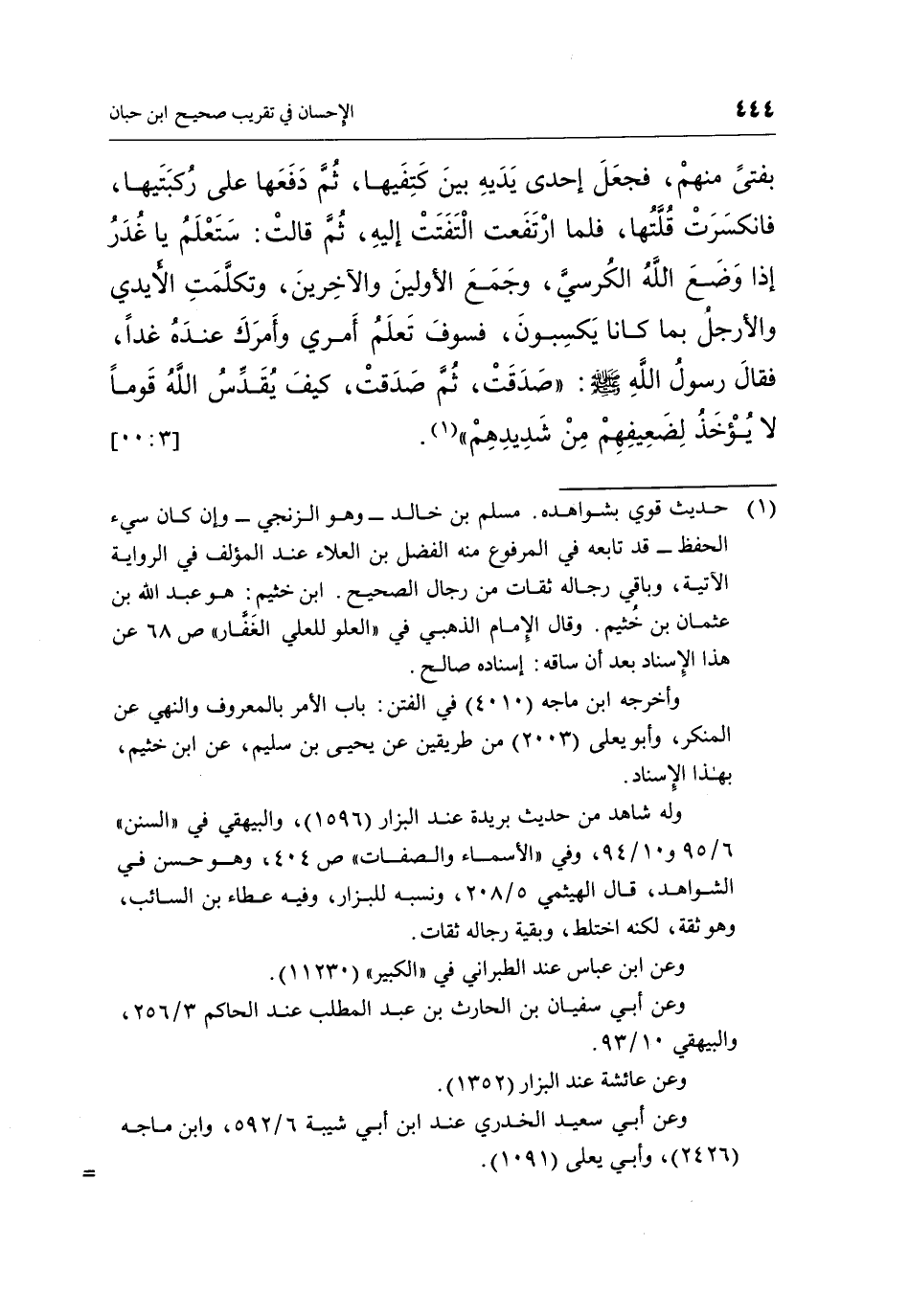 1 حديث قوي بشواهده. مسلم بن خالد بن –وهوالزنجي - وإن كان سئ الحفظ –وقد تابعه في المرفوع منه الفضل بن العلاء عند المؤلف في الرواية الآتية، وباقي رجاله ثقات من رجال الصحيح. ابن خثيم: هو عبد الله بن عثمان بن خثيم. وقال الإمام الذهبي في "العلو للعلي الغفار" ص68عن هذا الإسناد بعد أن ساقه: إسناده صالح.