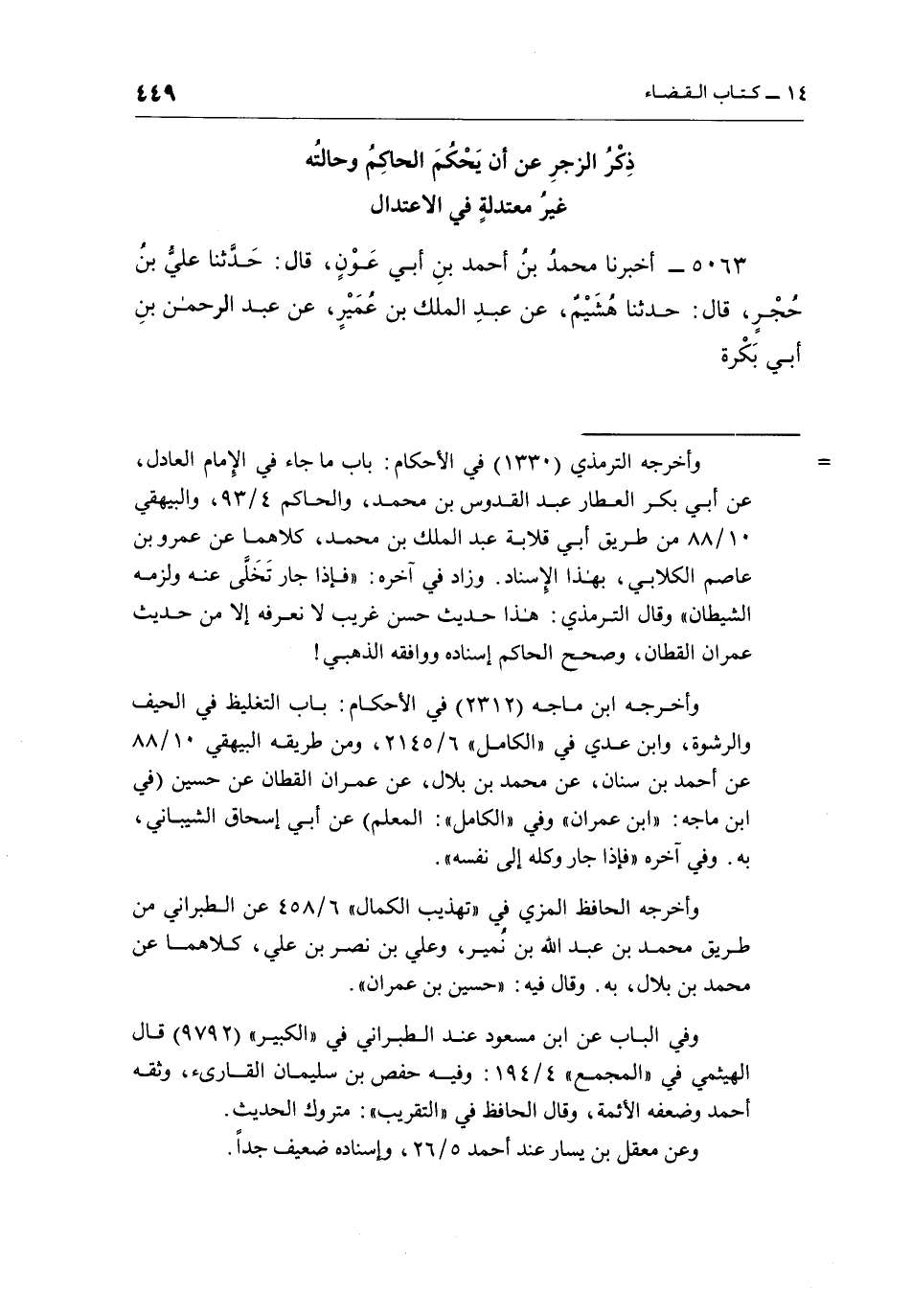 ذكر الزجر عن ان يحكم الحاكم وحالته غَيْرُ مُعْتَدِلَةٍ فِي الِاعْتِدَالِ