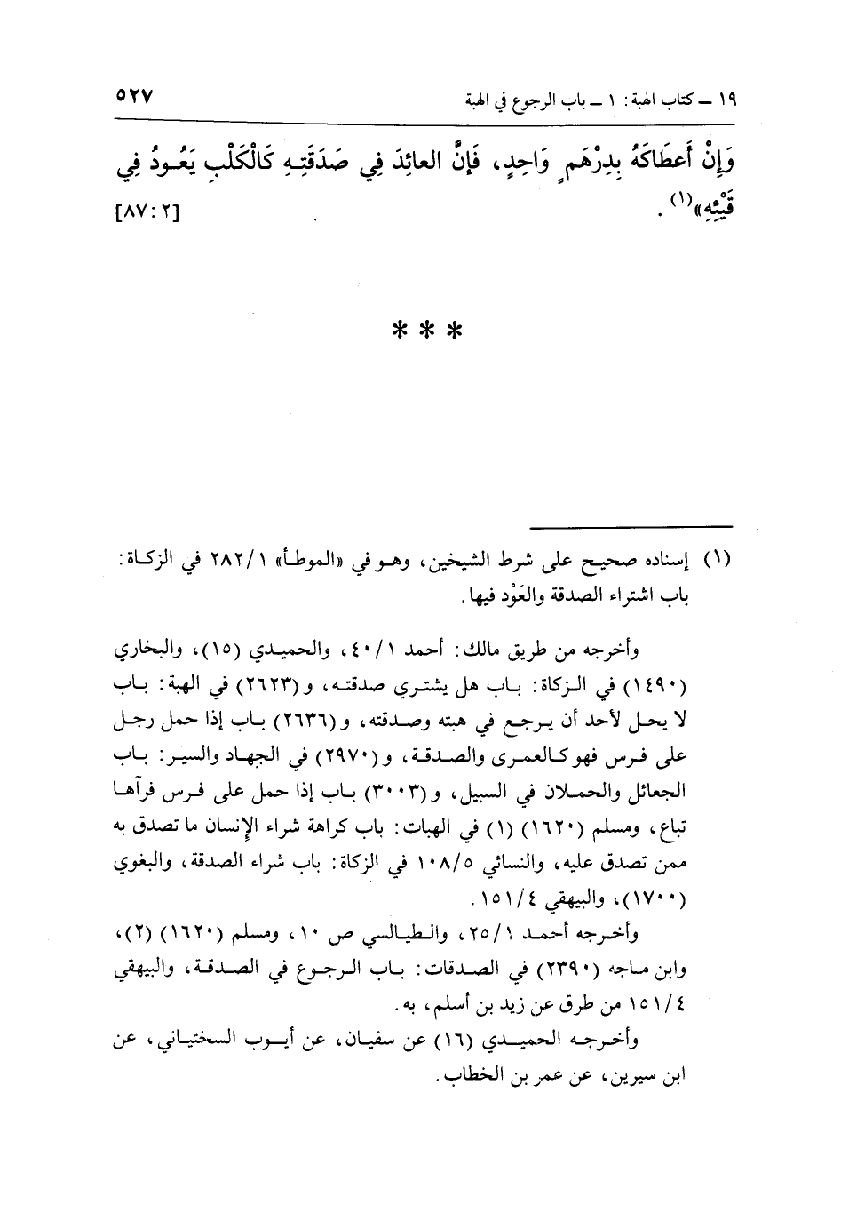 وأخرجه أحمد 1/25، والطيالسي ص10، ومسلم "1620" "2"، وابن ماجه "2390" في الصدقات: باب الرجوع في الصدقة، والبيهقي 4/151 من طرق عن زيد بن أسلم، به.
