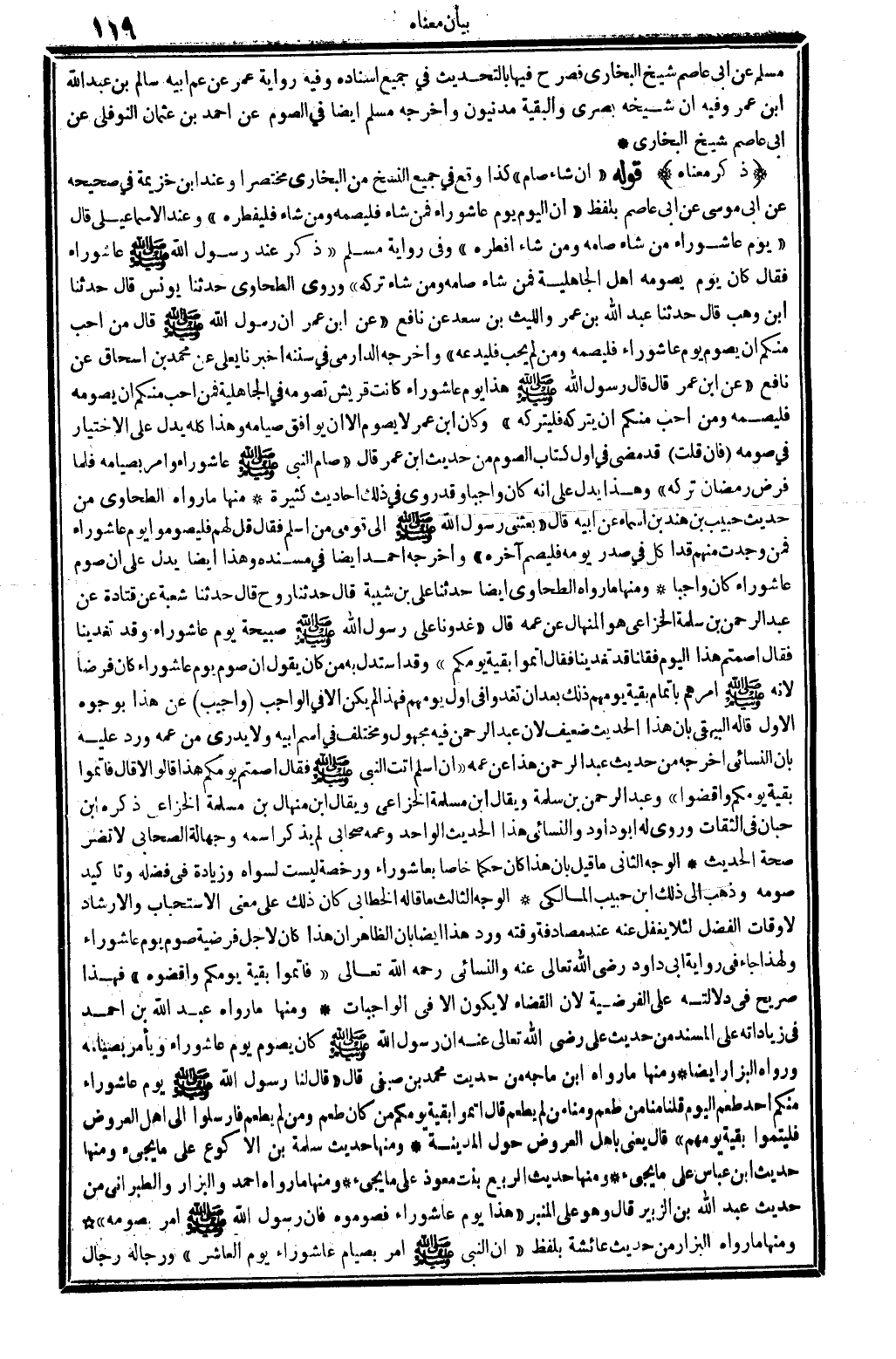 وَمِنْهَا: مَا رَوَاهُ عبد الله بن أَحْمد فِي (زياداته على الْمسند) من حَدِيث عَليّ، رَضِي الله تَعَالَى عَنهُ، أَن رَسُول الله صلى الله عَلَيْهِ وَسلم كَانَ يَصُوم عَاشُورَاء وَيَأْمُر بصيامه، وَرَوَاهُ الْبَزَّار أَيْضا. وَمِنْهَا: مَا رَوَاهُ ابْن مَاجَه من حَدِيث مُحَمَّد بن صَيْفِي، قَالَ: (قَالَ لنا رَسُول الله صلى الله عَلَيْهِ وَسلم يَوْم عَاشُورَاء: مِنْكُم أحد طعم الْيَوْم؟ قُلْنَا: منا من طعم وَمنا من لم يطعم. قَالَ: أَتموا بَقِيَّة يومكم، من كَانَ طعم وَمن لم يطعم، فأرسلوا إِلَى أهل الْعرُوض فليتموا بَقِيَّة يومهم) . قَالَ: يَعْنِي بِأَهْل الْعرُوض حول الْمَدِينَة. وَمِنْهَا: حَدِيث سَلمَة بن الْأَكْوَع، على مَا يَجِيء. وَمِنْهَا: حَدِيث ابْن عَبَّاس على مَا يَجِيء. وَمِنْهَا: حَدِيث الرّبيع بنت معوذ على مَا يَجِيء. وَمِنْهَا: مَا رَوَاهُ أَحْمد وَالْبَزَّار وَالطَّبَرَانِيّ من حَدِيث عبد الله بن الزبير. قَالَ، وَهُوَ على الْمِنْبَر: (هَذَا يَوْم عَاشُورَاء فصوموه، فَإِن رَسُول الله صلى الله عَلَيْهِ وَسلم أَمر بصومه) . وَمِنْهَا: مَا رَوَاهُ الْبَزَّار من حَدِيث عَائِشَة بِلَفْظ: (أَن النَّبِي صلى الله عَلَيْهِ وَسلم أَمر بصيام عَاشُورَاء يَوْم الْعَاشِر) ، وَرِجَاله رجال