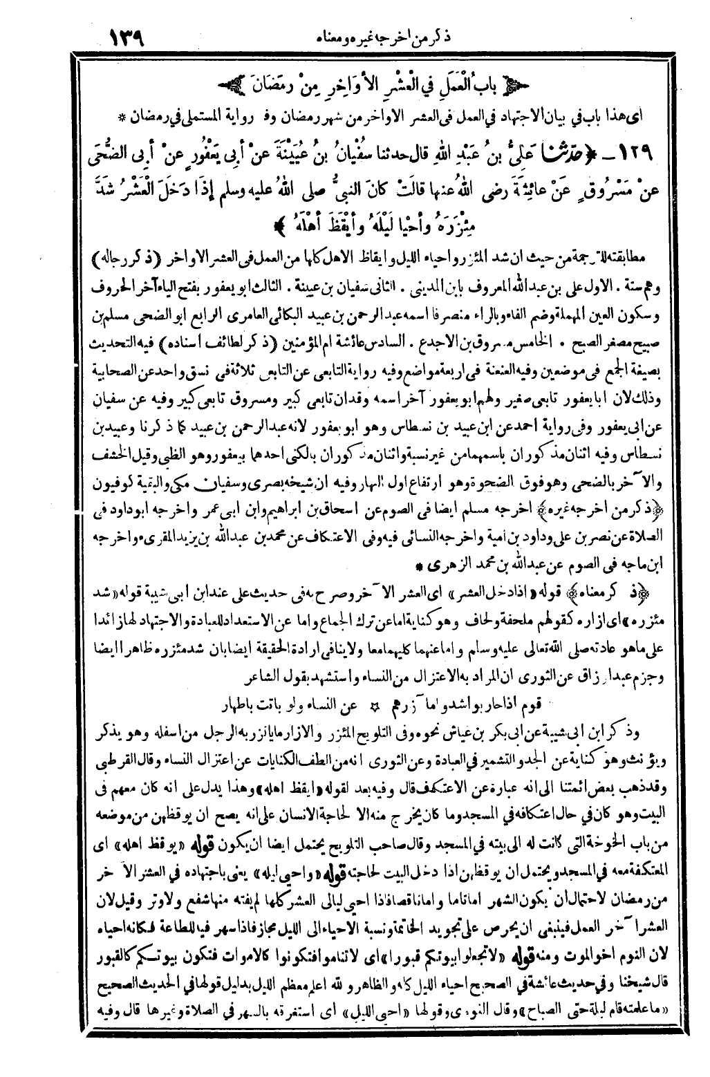 5 - (بابُ الْعَمَلِ فِي العَشرِ الأَوَاخِرِ مِنْ رَمَضانَ)