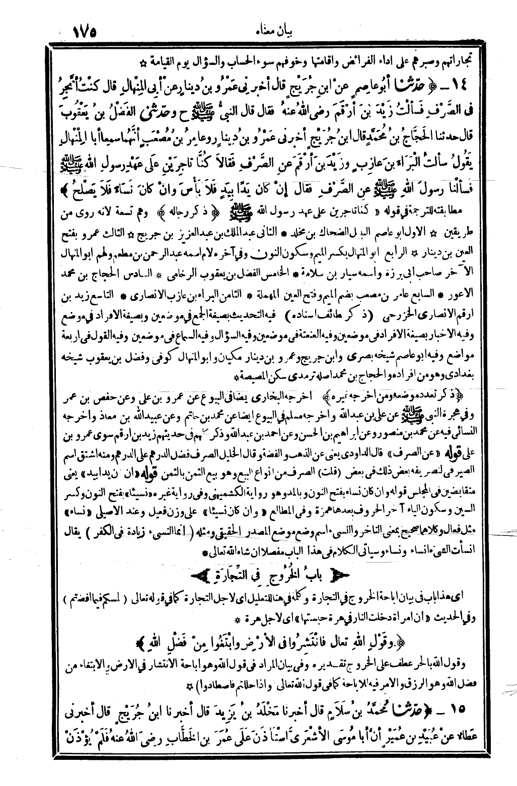 - 1602 حدَّثنا أبُو عَاصِمٍ عنِ ابنِ جُرَيْجٍ قَالَ أَخْبرنِي عَمْرُو بنُ دِينارٍ عنْ أبِي المِنْهَالِ قَالَ كنتُ أتَّجِرُ فِي الصَّرْفِ فَسألْتُ زَيْدَ بنَ أرْقَمَ رَضِي الله تَعَالَى عنهُ فَقَالَ قَالَ النبيُّ صلى الله عَلَيْهِ وَسلم ح وحدَّثني الفَضْلُ بنُ يَعْقُوبَ قَالَ حدَّثنا الحَجَّاجُ بنُ مُحَمَّدٍ قَالَ ابنُ جُرَيْجٍ أَخْبرنِي عَمْرُو بنُ دِينَارٍ وعامِرُ بنُ مُصْعَبٍ أنَّهُمَا سَمِعَا أبَا المِنْهَالِ يَقُولُ سألْتُ الْبَرَاءَ بنَ عازِبٍ وزَيْدَ بنَ أرْقَمَ عنِ الصَّرْفِ فَقالاَ كُنَّا تَاجِرَيْنِ عَلَى عَهْدِ رَسولِ الله صلى الله عَلَيْهِ وَسلم فَسألْنَا رسولَ الله صلى الله عَلَيْهِ وَسلم عنِ الصَّرْفِ فَقَالَ إنْ كانَ يَدا بِيَدٍ فَلاَ بَأسَ وإنْ كانَ نَسَاءً فَلاَ يَصْلُحُ ... [/ نه