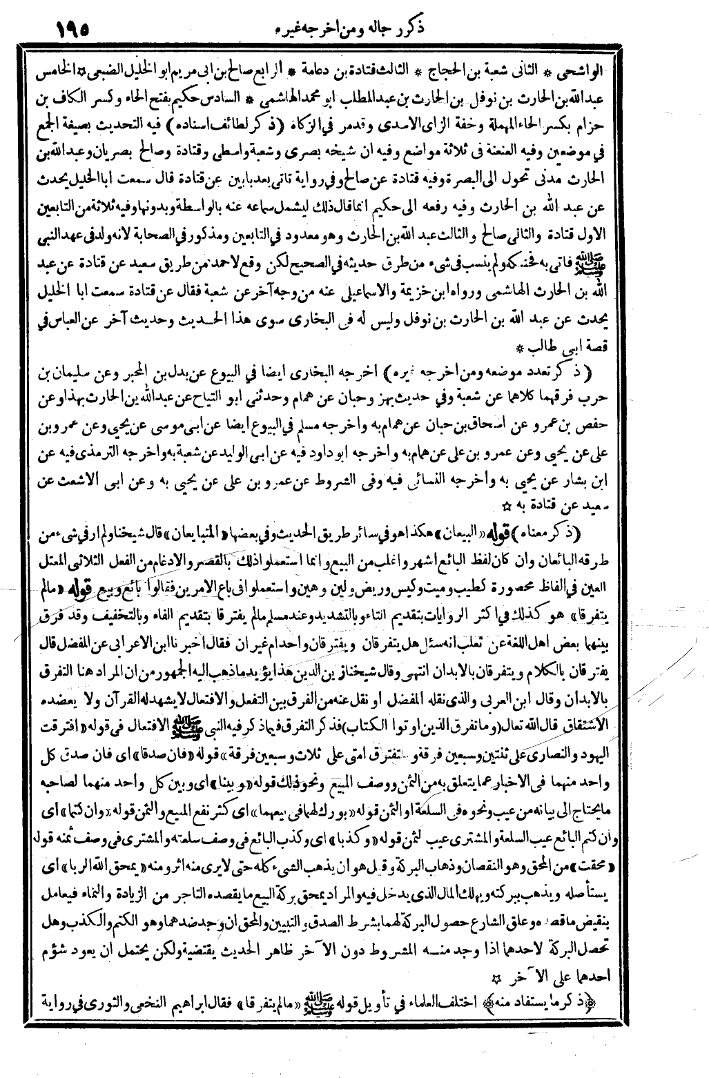 ذكر تعدد مَوْضِعه وَمن أخرجه غَيره: أخرجه البُخَارِيّ أَيْضا فِي الْبيُوع عَن بدل بن المحبر وَعَن سُلَيْمَان بن حَرْب فرقهما، كِلَاهُمَا عَن شُعْبَة، وَفِي حَدِيث بهز وحبان عَن همام، وحَدثني أَبُو التياح عَن عبد الله بن الْحَارِث بِهَذَا وَعَن حَفْص بن عَمْرو عَن إِسْحَاق بن حبَان عَن همام بِهِ. وَأخرجه مُسلم فِي الْبيُوع أَيْضا عَن أبي مُوسَى عَن يحيى وَعَن عَمْرو بن عَليّ عَن يحيى وَعَن عَمْرو بن عَليّ عَن همام بِهِ. وَأخرجه أَبُو دَاوُد فِيهِ عَن أبي الْوَلِيد عَن شُعْبَة بِهِ. وَأخرجه التِّرْمِذِيّ فِيهِ عَن ابْن بشار عَن يحيى بِهِ. وَأخرجه النَّسَائِيّ فِيهِ وَفِي الشُّرُوط عَن عَمْرو بن عَليّ عَن يحيى بِهِ وَعَن أبي الْأَشْعَث عَن سعيد عَن قَتَادَة بِهِ.