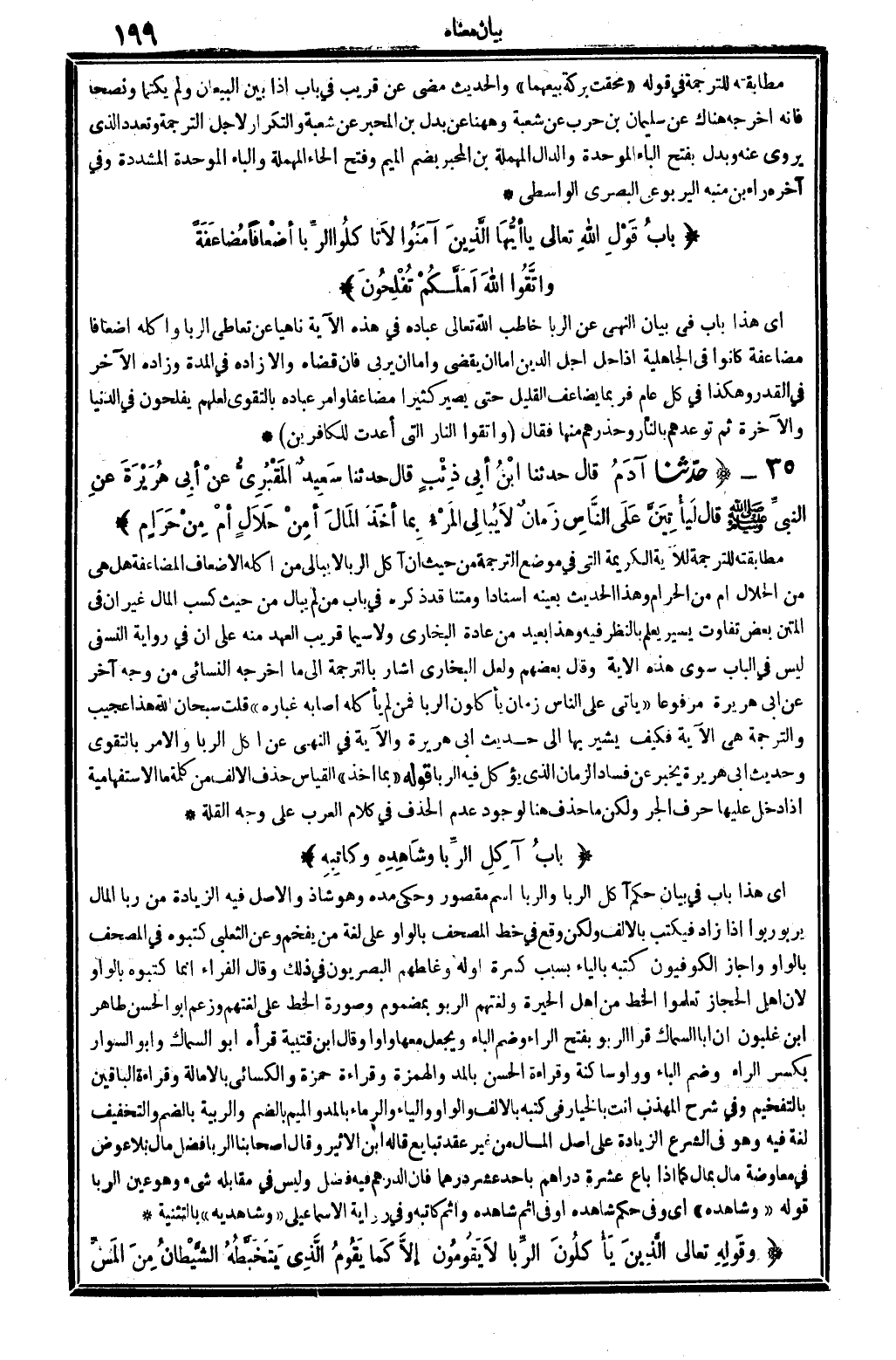 32 - (بابُ قَوْلِ الله تَعَالَى: {يَا أيُّهَا الَّذِينَ آمَنُوا لاَ تأكُلُوا الرِّبَا أضْعَافا مُضاعفَةً واتَّقُوا الله لَعَلَّكُمْ تُفْلِحُونَ} (آل عمرَان: 031) .)