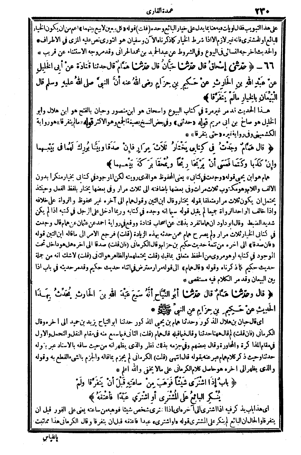 همام هُوَ ابْن يحيى. قَوْله: (وجدت فِي كتابي) ، يَعْنِي الْمَحْفُوظ هُوَ الَّذِي رويته، لَكِن الْمَوْجُود فِي كتابي (بِخِيَار) مُنْكرا بِدُونِ الْألف وَاللَّام، وَهُوَ مَكْتُوب ثَلَاث مَرَّات، وَفِي بَعْضهَا بإضافته إِلَى (ثَلَاث مرار) وَفِي بَعْضهَا (يخْتَار) بِلَفْظ الْفِعْل، وَحِينَئِذٍ يحْتَمل أَن يكون: ثَلَاث مرار، ومتعلقا بقوله: يخْتَار، وَقَالَ ابْن التِّين: وَقَول همام ... إِلَى آخِره، غير مَحْفُوظ، والرواة على خِلَافه. وَإِذا خَالف الْوَاحِد الروَاة جَمِيعًا لم يقبل قَوْله، سِيمَا أَنه وجده فِي كِتَابه، وَرُبمَا أَدخل على الرجل فِي كتبه إِذا لم يكن شَدِيد الضَّبْط. وَقَالَ أَبُو دَاوُد: إِن هماما تفرد بذلك عَن أَصْحَاب قَتَادَة، وَوَقع فِي رِوَايَة أَحْمد عَن عُثْمَان عَن همام، قَالَ: وجدت فِي كتابي: الْخِيَار ثَلَاث مرار، وَلم يُصَرح همام عَمَّن حَدثهُ بِهَذِهِ الزِّيَادَة. قلت: فَرجع الْأَمر إِلَى مَا قَالَه ابْن التِّين. قَوْله: (فَإِن صدقا) إِلَى آخِره، من تَتِمَّة حَدِيث حَكِيم بن حزَام، وَقَالَ الْكرْمَانِي: فَإِن قلت: (صدقا) إِلَى آخِره، هَل هُوَ دَاخل تَحت الْمَوْجُود فِي كِتَابه أَو هُوَ مَرْوِيّ من الْحِفْظ مُتَعَلق بِمَا قبله؟ قلت: يحتملهما، وَالظَّاهِر هُوَ الثَّانِي. قلت: لَا شكّ أَنه من جملَة حَدِيث حَكِيم، كَمَا ذَكرْنَاهُ. وَقَوله: (قَالَ همام) ، إِلَى قَوْله (مرَارًا) معترض فِي أثْنَاء حَدِيث حَكِيم، وَقد مر حَدِيثه فِي: بَاب إِذا بَين البيعان، وَقد مر الْكَلَام فِيهِ مستقصىً.