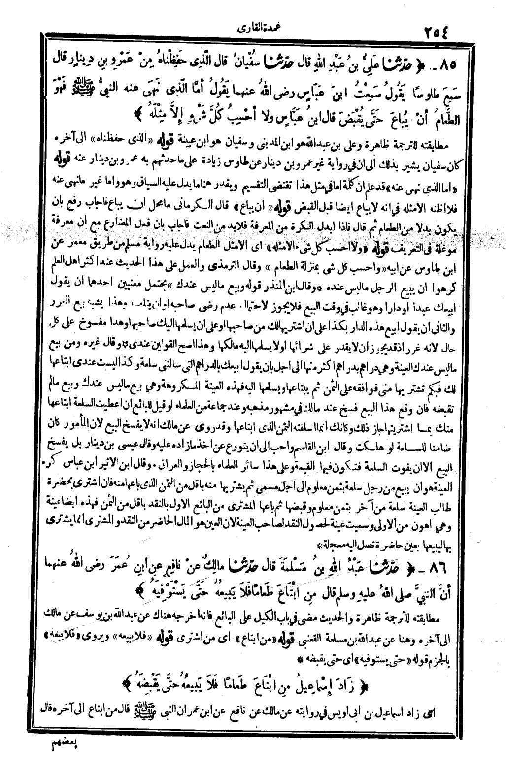 6312 - حدَّثنا عَبْدُ الله بنُ مَسْلَمَةَ قَالَ حدَّثنا مالِكٌ عنْ نافِعٍ عنِ ابنِ عُمرَ رَضِي الله تَعَالَى عَنْهُمَا أنَّ النبيَّ صلى الله عَلَيْهِ وَسلم قَالَ منِ ابْتاعَ طَعَاما فلاَ يَبيعُهُ حَتَّى يَسْتَوْفِيَهُ.