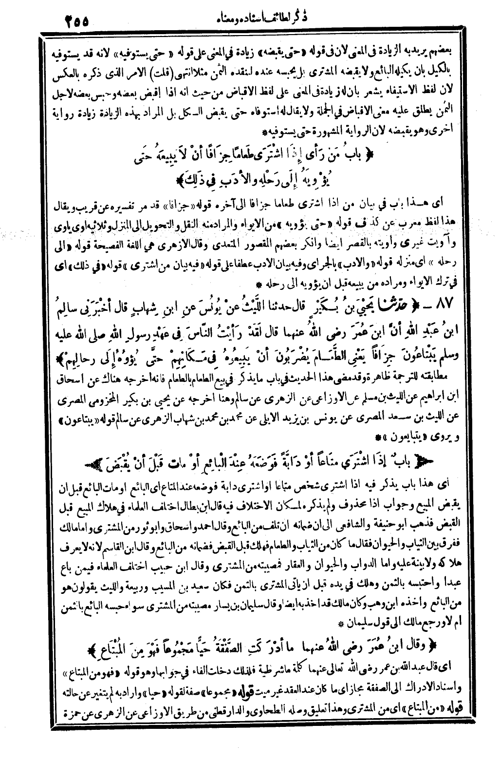 وقالَ ابنُ عُمَرَ رَضِي الله تَعَالَى عَنْهُمَا مَا أدْرَكَتِ الصَّفْقَةُ حَيَّا مَجْمُوعا فَهْوَ مِنَ المُبْتَاعِ