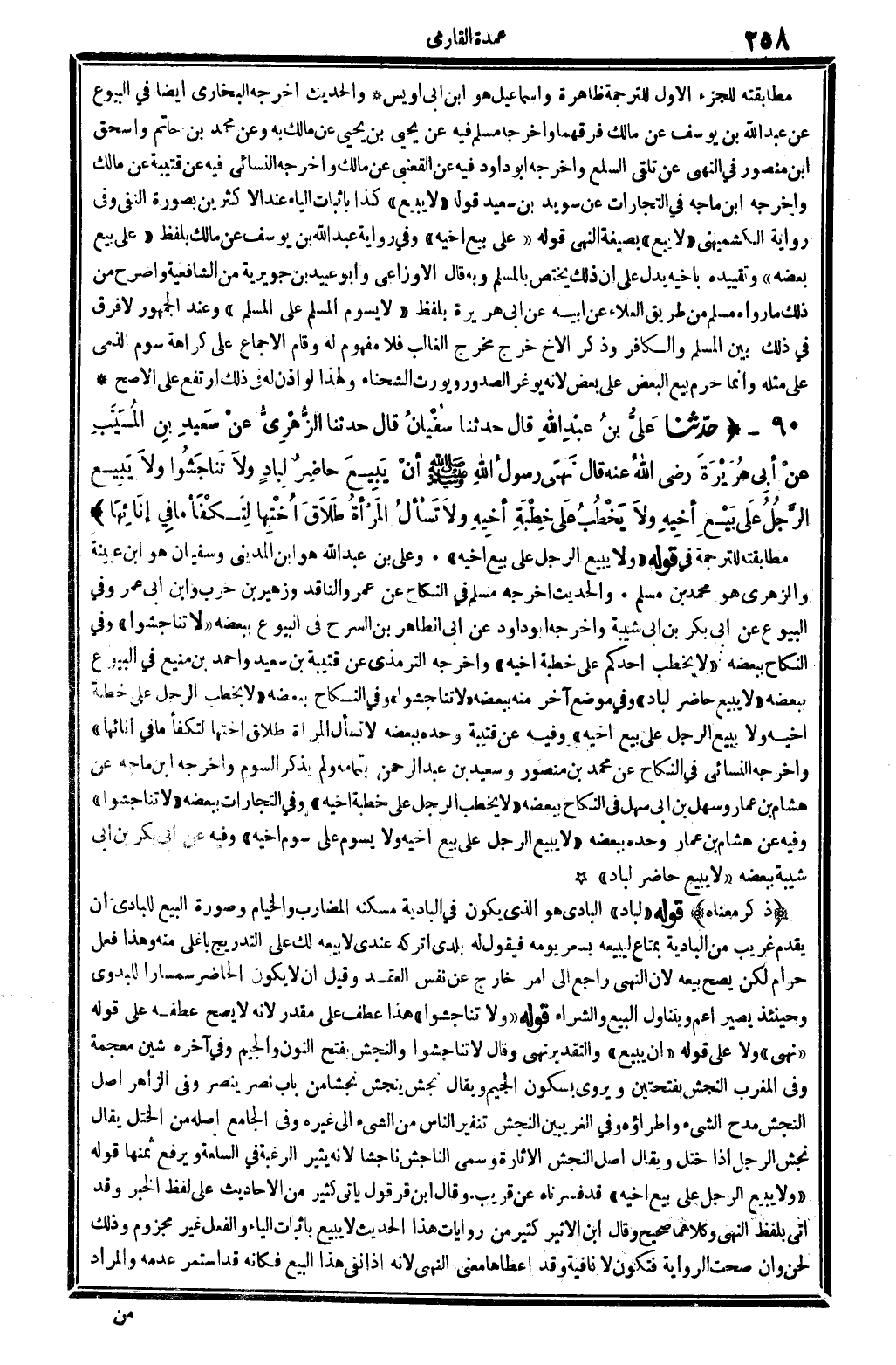 والْحَدِيث أخرجه مُسلم فِي النِّكَاح عَن عَمْرو النَّاقِد وَزُهَيْر بن حَرْب وَابْن أبي عمر وَفِي الْبيُوع عَن أبي بكر بن أبي شيبَة. وَأخرجه أَبُو دَاوُد عَن أبي الطَّاهِر بن السَّرْح فِي الْبيُوع بِبَعْضِه: (لَا تناجشوا) ، وَفِي النِّكَاح بِبَعْضِه: (لَا يخْطب أحدكُم على خطْبَة أَخِيه) . وَأخرجه التِّرْمِذِيّ عَن قُتَيْبَة بن سعيد وَأحمد بن منيع فِي الْبيُوع بِبَعْضِه: (لَا يَبِيع حَاضر لباد) ، وَفِي مَوضِع آخر مِنْهُ بِبَعْضِه: (لَا تناجشوا) وَفِي النِّكَاح بِبَعْضِه: (لَا يخْطب الرجل على خطْبَة أَخِيه وَلَا يَبِيع الرجل على بيع أَخِيه) ، وَفِيه عَن قُتَيْبَة وَحده بِبَعْضِه: (لَا تسْأَل الْمَرْأَة طَلَاق أُخْتهَا لتكفأ مَا فِي إناثها) . وَأخرجه النَّسَائِيّ فِي النِّكَاح عَن مُحَمَّد بن مَنْصُور وَسَعِيد بن عبد الرَّحْمَن بِتَمَامِهِ، وَلم يذكر السّوم. وَأخرجه ابْن مَاجَه عَن هِشَام بن عمار وَسَهل بن أبي سهل فِي النِّكَاح بِبَعْضِه: (لَا يخْطب الرجل على خطْبَة أَخِيه) وَفِي التِّجَارَات بِبَعْضِه: (لَا تناجشوا) ، وَفِيه عَن هِشَام بن عمار وَحده بِبَعْضِه: (لَا يَبِيع الرجل على بيع أَخِيه وَلَا يسوم على سوم أَخِيه) . وَفِيه عَن أبي بكر بن أبي شيبَة بِبَعْضِه: (لَا يَبِيع حَاضر لباد) .