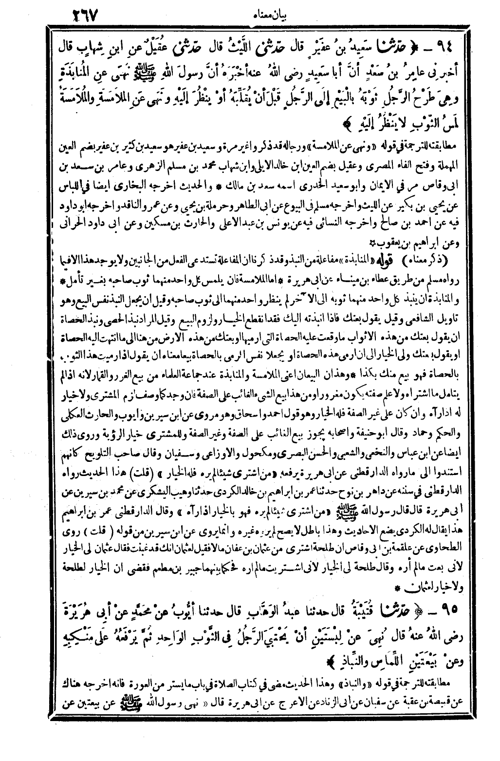 4412 - حدَّثنا سَعِيدُ بنُ عفَيْرٍ قَالَ حدَّثني اللَّيْثُ قَالَ حدَّثني عُقَيْلٌ عنِ ابنِ شِهَابٍ قَالَ أخبرنِي عامِرُ بنُ سعْدٍ أنَّ أبَا سَعِيدٍ رَضِي الله تَعَالَى عنهُ أخْبَرَهُ أنَّ رسولَ الله صلى الله عَلَيْهِ وَسلم نَهَى عنِ المُنَابَذَةِ وهِيَ طَرْحُ الرَّجُلِ ثَوْبَهُ بالْبَيْعِ إِلَى الرَّجُلِ قَبْلَ أنْ يُقَلِّبَهُ أوْ يَنْظُرَ إلَيْهِ ونَهَى عَنِ المُلاَمَسَةِ والمُلاَمَسَةُ لَمْسُ الثَّوْبِ لَا يَنْظُرُ إلَيْهِ. .