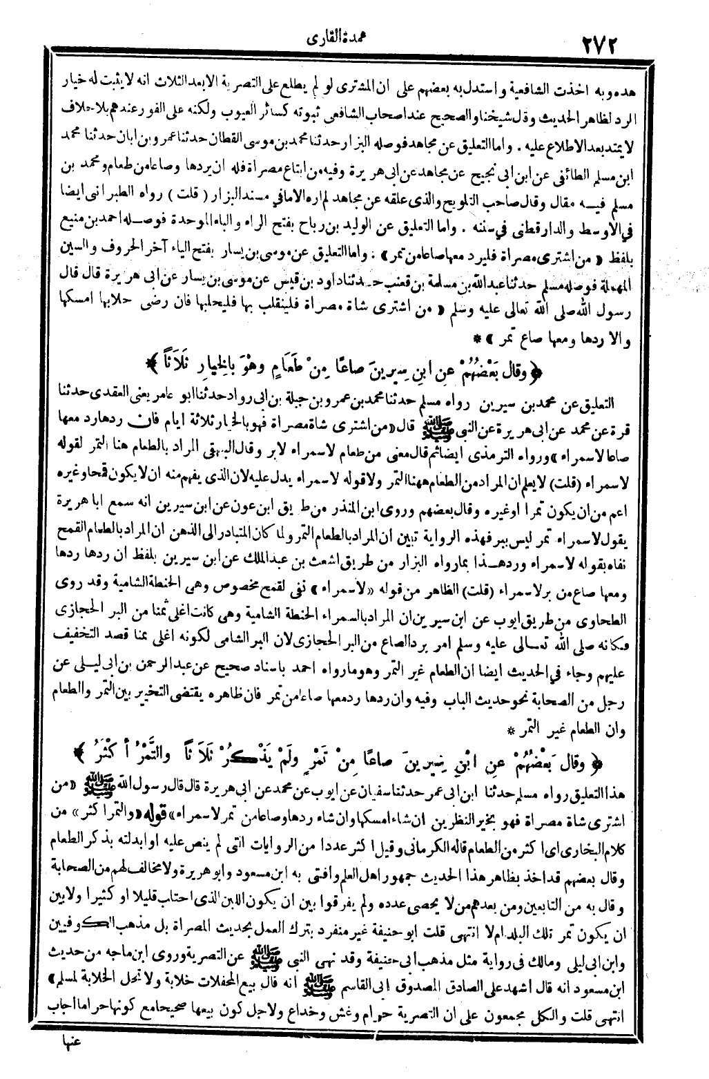 التَّعْلِيق عَن مُحَمَّد بن سِيرِين رَوَاهُ مُسلم: حَدثنَا مُحَمَّد بن عَمْرو بن جبلة بن أبي رواد حَدثنَا أَبُو عَامر يَعْنِي: الْعَقدي حَدثنَا قُرَّة عَن مُحَمَّد عَن أبي هُرَيْرَة عَن النَّبِي صلى الله عَلَيْهِ وَسلم، قَالَ: (من اشْترى شَاة مصراة فَهُوَ بِالْخِيَارِ ثَلَاثَة أَيَّام، فَإِن ردهَا رد مَعهَا صَاعا لَا سمراء) ، وَرَوَاهُ التِّرْمِذِيّ أَيْضا، ثمَّ قَالَ: معنى من طَعَام: لَا سمراء، لَا بر. وَقَالَ الْبَيْهَقِيّ: المُرَاد بِالطَّعَامِ هُنَا التَّمْر، لقَوْله: لَا سمراء قلت: لَا يعلم أَن المُرَاد من الطَّعَام هَهُنَا التَّمْر، وَلَا قَوْله: لَا سمراء، يدل عَلَيْهِ لِأَن الَّذِي يفهم مِنْهُ أَن لَا يكون قمحا وَغَيره أَعم من أَن يكون تَمرا أَو غَيره. وَقَالَ بَعضهم: وروى ابْن الْمُنْذر من طَرِيق ابْن عون عَن ابْن سِيرِين أَنه سمع أَبَا هُرَيْرَة يَقُول: لَا سمراء، تمر لَيْسَ ببر، فَهَذِهِ الرِّوَايَة تبين أَن المُرَاد بِالطَّعَامِ التَّمْر، وَلما كَانَ الْمُتَبَادر إِلَى الذِّهْن أَن المُرَاد بِالطَّعَامِ الْقَمْح نَفَاهُ بقوله: لَا سمراء، ورد هَذَا بِمَا رَوَاهُ الْبَزَّار من طَرِيق أَشْعَث بن عبد الْملك عَن ابْن سِيرِين بِلَفْظ: إِن ردهَا ردهَا وَمَعَهَا صَاع من بر لَا سمراء. قلت: الظَّاهِر من قَوْله: (لَا سمراء) نفي لقمح مَخْصُوص، وَهِي الْحِنْطَة الشامية، وَقد روى الطَّحَاوِيّ من طَرِيق أَيُّوب عَن ابْن سِيرِين: أَن المُرَاد بالسمراء الْحِنْطَة الشامية، وَهِي كَانَت أغْلى ثمنا من الْبر الْحِجَازِي فَكَأَنَّهُ، صلى الله عَلَيْهِ وَسلم، أَمر برد الصَّاع من الْبر الْحِجَازِي لِأَن الْبر الشَّامي لكَونه أغْلى ثمنا قصد التَّخْفِيف عَلَيْهِم، وَجَاء فِي الحَدِيث أَيْضا: أَن الطَّعَام غير التَّمْر، وَهُوَ مَا رَوَاهُ أَحْمد بِإِسْنَاد صَحِيح عَن عبد الرَّحْمَن بن أبي ليلى عَن رجل من الصَّحَابَة نَحْو حَدِيث الْبَاب، وَفِيه: وَإِن ردهَا رد مَعهَا صَاعا من تمر، فَإِن ظَاهره يَقْتَضِي التَّخْيِير بَين التَّمْر وَالطَّعَام، وَأَن الطَّعَام غير التَّمْر.