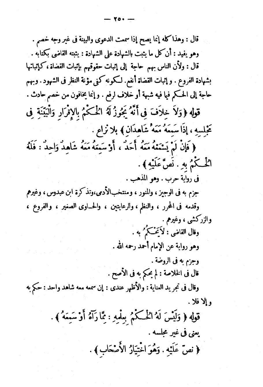 قَوْلُهُ (وَلَا خِلَافَ فِي أَنَّهُ يَجُوزُ لَهُ الْحُكْمُ بِالْإِقْرَارِ وَالْبَيِّنَةِ فِي مَجْلِسِهِ، إذَا سَمِعَهُ مَعَهُ شَاهِدَانِ) بِلَا نِزَاعٍ. قَوْلُهُ (فَإِنْ لَمْ يَسْمَعْهُ مَعَهُ أَحَدٌ، أَوْ سَمِعَهُ شَاهِدٌ وَاحِدٌ: فَلَهُ الْحُكْمُ بِهِ. نَصَّ عَلَيْهِ) . فِي رِوَايَةِ حَرْبٍ. وَهُوَ الْمَذْهَبُ. جَزَمَ بِهِ فِي الْوَجِيزِ، وَالْمُنَوِّرِ، وَمُنْتَخَبِ الْأَدَمِيِّ، وَتَذْكِرَةِ ابْنِ عَبْدُوسٍ، وَغَيْرِهِمْ وَقَدَّمَهُ فِي الْمُحَرَّرِ، وَالنَّظْمِ، وَالرِّعَايَتَيْنِ، وَالْحَاوِي الصَّغِيرِ، وَالْفُرُوعِ وَالزَّرْكَشِيِّ، وَغَيْرِهِمْ. وَقَالَ الْقَاضِي: لَا يَحْكُمُ بِهِ. وَهُوَ رِوَايَةٌ عَنْ الْإِمَامِ أَحْمَدَ - رَحِمَهُ اللَّهُ -. وَجَزَمَ بِهِ فِي الرَّوْضَةِ. قَالَ فِي الْخُلَاصَةِ: لَمْ يُحْمَلْ بِهِ فِي الْأَصَحِّ. وَقَالَ فِي تَجْرِيدِ الْعِنَايَةِ: وَالْأَظْهَرُ عِنْدِي: إنْ سَمِعَهُ مَعَهُ شَاهِدٌ وَاحِدٌ: حَكَمَ بِهِ وَإِلَّا فَلَا.