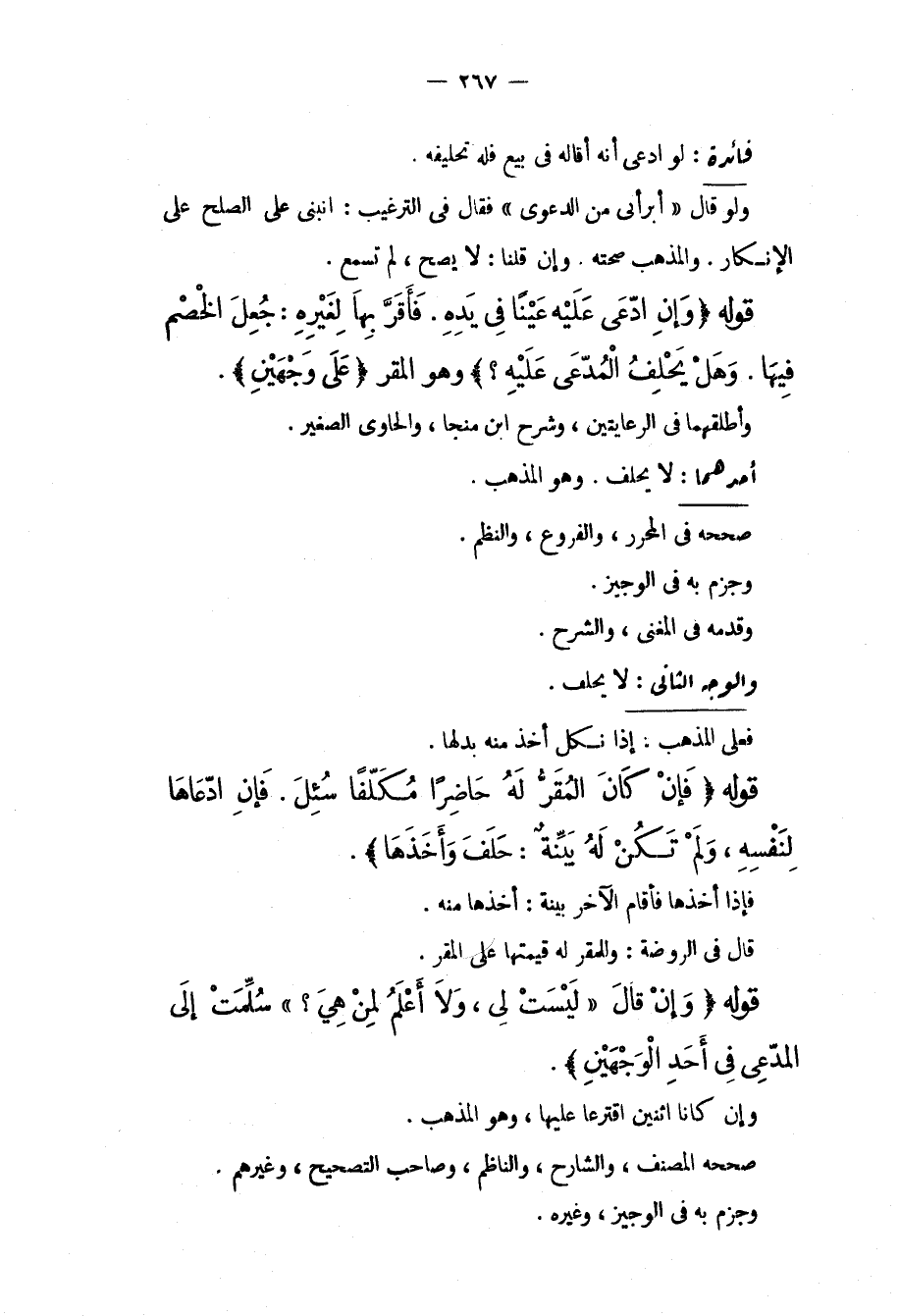 أَحَدِهِمَا: لَا يَحْلِفُ. وَهُوَ الْمَذْهَبُ. صَحَّحَهُ فِي الْمُحَرَّرِ، وَالْفُرُوعِ، وَالنَّظْمِ. وَجَزَمَ بِهِ فِي الْوَجِيزِ. وَقَدَّمَهُ فِي الْمُغْنِي، وَالشَّرْحِ.