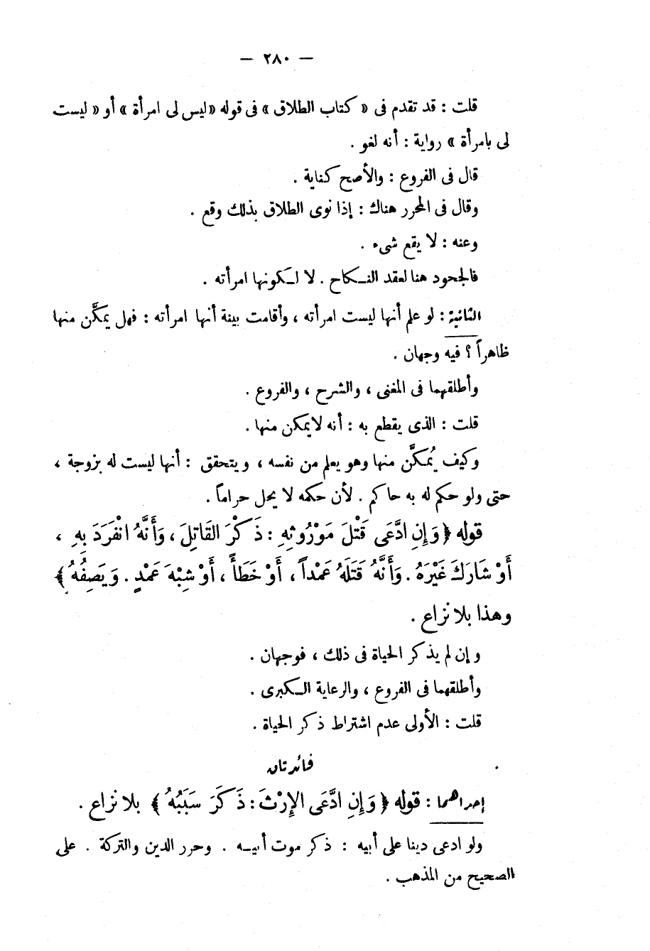 قُلْت: قَدْ تَقَدَّمَ فِي " كِتَابِ الطَّلَاقِ " فِي قَوْلِهِ " لَيْسَ لِي امْرَأَةٌ " أَوْ " لَيْسَتْ لِي بِامْرَأَةٍ " رِوَايَةٌ: أَنَّهُ لَغْوٌ. قَالَ فِي الْفُرُوعِ: وَالْأَصَحُّ كِنَايَةٌ. وَقَالَ فِي الْمُحَرَّرِ هُنَاكَ: إذَا نَوَى الطَّلَاقَ بِذَلِكَ وَقَعَ. وَعَنْهُ: لَا يَقَعُ شَيْءٌ. فَالْجُحُودُ هُنَا لِعَقْدِ النِّكَاحِ. لَا لِكَوْنِهَا امْرَأَتَهُ.