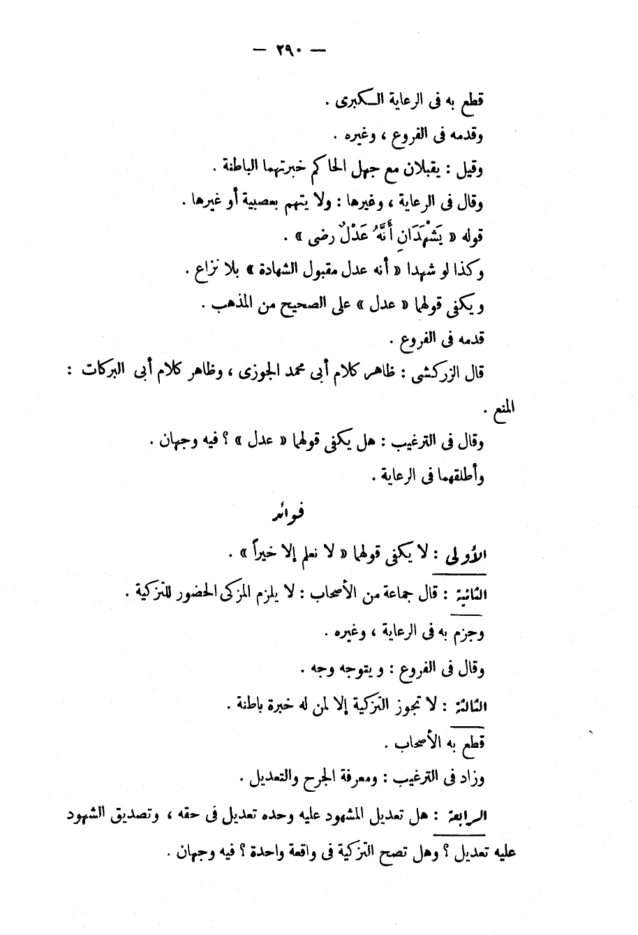 قَالَ الزَّرْكَشِيُّ: ظَاهِرُ كَلَامِ أَبِي مُحَمَّدٍ الْجَوْزِيِّ، وَظَاهِرُ كَلَامِ أَبِي الْبَرَكَاتِ: الْمَنْعُ. وَقَالَ فِي التَّرْغِيبِ: هَلْ يَكْفِي قَوْلُهُمَا " عَدْلٌ " فِيهِ وَجْهَانِ. وَأَطْلَقَهُمَا فِي الرِّعَايَةِ. فَوَائِدُ