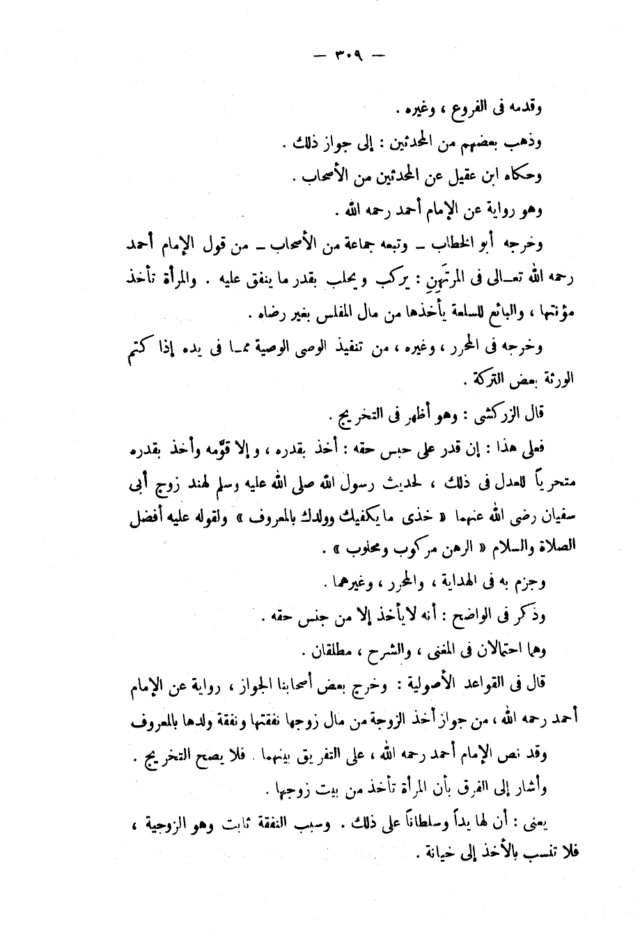 وَقَدَّمَهُ فِي الْفُرُوعِ، وَغَيْرِهِ. وَذَهَبَ بَعْضُهُمْ مِنْ الْمُحَدِّثِينَ: إلَى جَوَازِ ذَلِكَ. وَحَكَاهُ ابْنُ عَقِيلٍ عَنْ الْمُحَدِّثِينَ مِنْ الْأَصْحَابِ. وَهُوَ رِوَايَةٌ عَنْ الْإِمَامِ أَحْمَدَ - رَحِمَهُ اللَّهُ -. وَخَرَّجَهُ أَبُو الْخَطَّابِ وَتَبِعَهُ جَمَاعَةٌ مِنْ الْأَصْحَابِ مِنْ قَوْلِ الْإِمَامِ أَحْمَدَ - رَحِمَهُ اللَّهُ تَعَالَى - فِي الْمُرْتَهِنِ: يَرْكَبُ وَيَحْلِبُ بِقَدْرِ مَا يُنْفِقُ عَلَيْهِ. وَالْمَرْأَةُ تَأْخُذُ مُؤْنَتَهَا، وَالْبَائِعُ لِلسِّلْعَةِ يَأْخُذُهَا مِنْ مَالِ الْمُفْلِسِ بِغَيْرِ رِضَاهُ. وَخَرَّجَهُ فِي الْمُحَرَّرِ، وَغَيْرِهِ، مِنْ تَنْفِيذِ الْوَصِيِّ الْوَصِيَّةَ مِمَّا فِي يَدِهِ إذَا كَتَمَ الْوَرَثَةُ بَعْضَ التَّرِكَةِ.