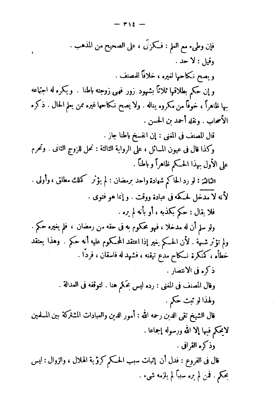 فَإِنْ وَطِئَ مَعَ الْعِلْمِ: فَكَزِنًا، عَلَى الصَّحِيحِ مِنْ الْمَذْهَبِ. وَقِيلَ: لَا حَدَّ. وَيَصِحُّ نِكَاحُهَا لِغَيْرِهِ، خِلَافًا لِلْمُصَنِّفِ. وَإِنْ حُكِمَ بِطَلَاقِهَا ثَلَاثًا بِشُهُودِ زُورٍ فَهِيَ زَوْجَتُهُ بَاطِنًا. وَيُكْرَهُ لَهُ اجْتِمَاعُهُ بِهَا ظَاهِرًا، خَوْفًا مِنْ مَكْرُوهٍ يَنَالُهُ. وَلَا يَصِحُّ نِكَاحُهَا غَيْرَهُ مِمَّنْ يَعْلَمُ الْحَالَ. ذَكَرَهُ الْأَصْحَابُ. وَنَقَلَهُ أَحْمَدُ بْنُ الْحَسَنِ. قَالَ الْمُصَنِّفُ فِي الْمُغْنِي: إنْ انْفَسَخَ بَاطِنًا جَازَ. وَكَذَا قَالَ فِي عُيُونِ الْمَسَائِلِ، عَلَى الرِّوَايَةِ الثَّالِثَةِ: تَحِلُّ لِلزَّوْجِ الثَّانِي. وَتَحْرُمُ عَلَى الْأَوَّلِ بِهَذَا الْحُكْمِ ظَاهِرًا وَبَاطِنًا.