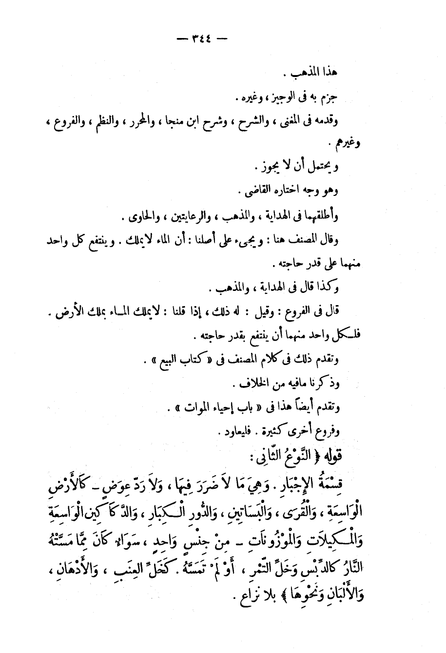 هَذَا الْمَذْهَبُ. جَزَمَ بِهِ فِي الْوَجِيزِ وَغَيْرِهِ. وَقَدَّمَهُ فِي الْمُغْنِي، وَالشَّرْحِ، وَشَرْحِ ابْنِ مُنَجَّا، وَالْمُحَرَّرِ، وَالنَّظْمِ، وَالْفُرُوعِ، وَغَيْرِهِمْ. وَيُحْتَمَلُ أَنْ لَا يَجُوزَ. وَهُوَ وَجْهٌ اخْتَارَهُ الْقَاضِي. وَأَطْلَقَهُمَا فِي الْهِدَايَةِ، وَالْمُذْهَبِ، وَالرِّعَايَتَيْنِ، وَالْحَاوِي. وَقَالَ الْمُصَنِّفُ هُنَا: وَيَجِيءُ عَلَى أَصْلِنَا: أَنَّ الْمَاءَ لَا يُمْلَكُ. وَيَنْتَفِعُ كُلُّ وَاحِدٍ مِنْهُمَا عَلَى قَدْرِ حَاجَتِهِ. وَكَذَا قَالَ فِي الْهِدَايَةِ، وَالْمُذْهَبِ. قَالَ فِي الْفُرُوعِ: وَقِيلَ: لَهُ ذَلِكَ، إذَا قُلْنَا: لَا يُمْلَكُ الْمَاءُ بِمِلْكِ الْأَرْضِ فَلِكُلِّ وَاحِدٍ مِنْهُمَا أَنْ يَنْتَفِعَ بِقَدْرِ حَاجَتِهِ. وَتَقَدَّمَ ذَلِكَ فِي كَلَامِ الْمُصَنِّفِ فِي " كِتَابِ الْبَيْعِ ". وَذَكَرْنَا مَا فِيهِ مِنْ الْخِلَافِ. وَتَقَدَّمَ أَيْضًا هَذَا فِي " بَابِ إحْيَاءِ الْمَوَاتِ ". وَفُرُوعٍ أُخْرَى كَثِيرَةٍ. فَلْيُعَاوَدْ