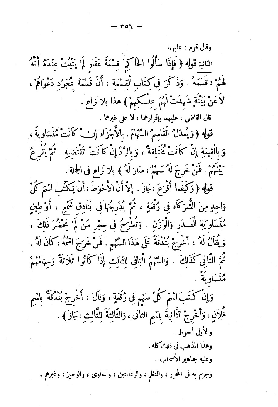 قَوْلُهُ (وَيُعَدِّلُ الْقَاسِمُ السِّهَامَ. بِالْأَجْزَاءِ إنْ كَانَتْ مُتَسَاوِيَةً، وَبِالْقِيمَةِ إنْ كَانَتْ مُخْتَلِفَةً، وَبِالرَّدِّ إنْ كَانَتْ تَقْتَضِيه. ثُمَّ يُقْرِعُ بَيْنَهُمْ. فَمَنْ خَرَجَ لَهُ سَهْمٌ: صَارَ لَهُ) بِلَا نِزَاعٍ فِي الْجُمْلَةِ. قَوْلُهُ (وَكَيْفَمَا أَقْرَعَ: جَازَ. إلَّا أَنَّ الْأَحْوَطَ: أَنْ يَكْتُبَ اسْمَ كُلِّ وَاحِدٍ مِنْ الشُّرَكَاءِ فِي رُقْعَةٍ، ثُمَّ يُدْرِجَهَا فِي بَنَادِقِ شَمْعٍ، أَوْ طِينٍ مُتَسَاوِيَةِ الْقَدْرِ وَالْوَزْنِ. وَتُطْرَحُ فِي حِجْرِ مَنْ لَمْ يَحْضُرْ ذَلِكَ، وَيُقَالُ لَهُ: أَخْرِجْ بُنْدُقَةً عَلَى هَذَا السَّهْمِ. فَمَنْ خَرَجَ اسْمُهُ: كَانَ لَهُ ثُمَّ الثَّانِي كَذَلِكَ. وَالسَّهْمُ الْبَاقِي لِلثَّالِثِ إذَا كَانُوا ثَلَاثَةً وَسِهَامُهُمْ مُتَسَاوِيَةً. وَإِنْ كَتَبَ اسْمَ كُلِّ سَهْمٍ فِي رُقْعَةٍ، وَقَالَ: أَخْرِجْ بُنْدُقَةً بِاسْمِ فُلَانٍ، وَأَخْرِجْ الثَّانِيَةَ بِاسْمِ الثَّانِي، وَالثَّالِثَةَ لِلثَّالِثِ: جَازَ) . وَالْأَوَّلُ أَحْوَطُ. وَهَذَا الْمَذْهَبُ فِي ذَلِكَ كُلِّهِ. وَعَلَيْهِ جَمَاهِيرُ الْأَصْحَابِ.
