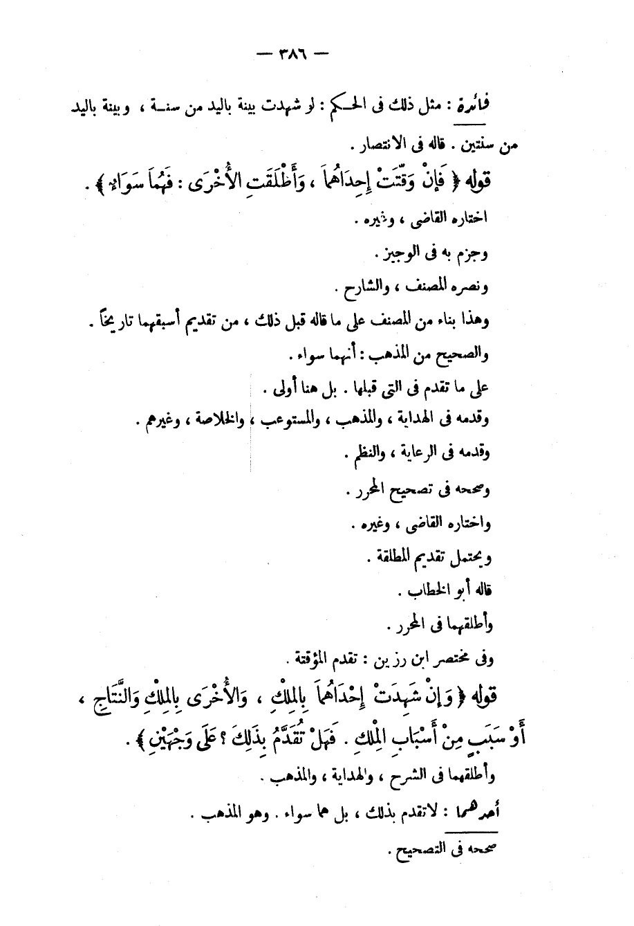 قَوْلُهُ (فَإِنْ وَقَّتَتْ إحْدَاهُمَا، وَأَطْلَقَتْ الْأُخْرَى: فَهُمَا سَوَاءٌ) . اخْتَارَهُ الْقَاضِي، وَغَيْرُهُ. وَجَزَمَ بِهِ فِي الْوَجِيزِ. وَنَصَرَهُ الْمُصَنِّفُ، وَالشَّارِحُ. وَهَذَا بِنَاءً مِنْ الْمُصَنِّفِ عَلَى مَا قَالَهُ قَبْلَ ذَلِكَ، مِنْ تَقْدِيمِ أَسْبَقِهِمَا تَارِيخًا. وَالصَّحِيحُ مِنْ الْمَذْهَبِ: أَنَّهُمَا سَوَاءٌ. عَلَى مَا تَقَدَّمَ فِي الَّتِي قَبْلَهَا. بَلْ هُنَا أَوْلَى. وَقَدَّمَهُ فِي الْهِدَايَةِ، وَالْمُذْهَبِ، وَالْمُسْتَوْعِبِ، وَالْخُلَاصَةِ، وَغَيْرِهِمْ. وَقَدَّمَهُ فِي الرِّعَايَةِ، وَالنَّظْمِ. وَصَحَّحَهُ فِي تَصْحِيحِ الْمُحَرَّرِ. وَاخْتَارَهُ الْقَاضِي، وَغَيْرُهُ. وَيُحْتَمَلُ تَقْدِيمُ الْمُطَلَّقَةِ. قَالَهُ أَبُو الْخَطَّابِ. وَأَطْلَقَهُمَا فِي الْمُحَرَّرِ. وَفِي مُخْتَصَرِ ابْنِ رَزِينٍ: تُقَدَّمُ الْمُؤَقَّتَةُ.