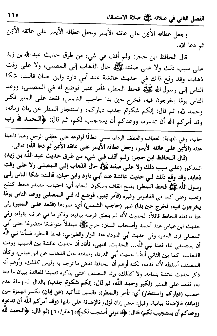 وجعل عطافه الأيمن على عاتقه الأيسر وجعل عطافه الأيسر على عاتقه الأيمن ثم دعا الله.