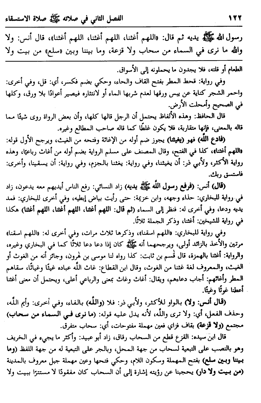 رسول الله -صلى الله عليه وسلم- يديه ثم قال: "اللهم أغثنا، اللهم أغثنا، اللهم أغثنا"، قال أنس: ولا والله ما نرى في السماء من سحاب ولا قزعة، وما بيننا وبين "سلع" من بيت ولا