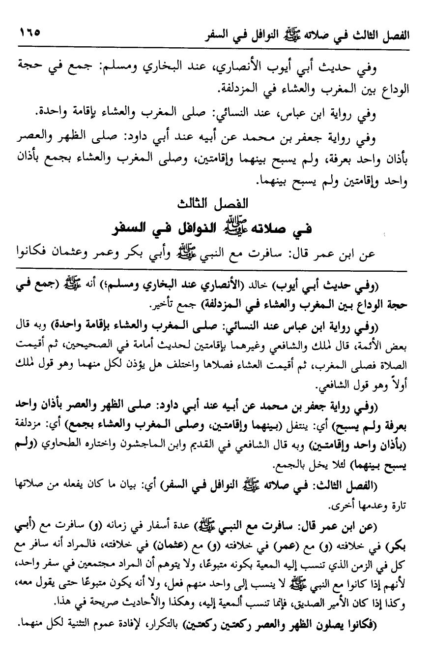 "عن ابن عمر قال: سافرت مع النبي -صلى الله عليه وسلم" عدة أسفار في زمانه "و" سافرت مع "أبي بكر" في خلافته "و" مع "عمر" في خلافته "و" مع "عثمان" في خلافته، فالمراد أنه سافر مع كل في الزمن الذي تنسب إليه المعية بكونه متبوعا، ولا يتوهم أن المراد مجتمعين في سفر واحد؛ لأنهم إذا كانوا مع النبي -صلى الله عليه وسلم- لا ينسب إلى واحد منهم فعل، ولا أنه يكون متبوعا حتى يقول معه، وكذا إذا كان الأمير الصديق، فإنما تنسب المعية إليه، وهكذا والأحاديث صريحة في هذا.