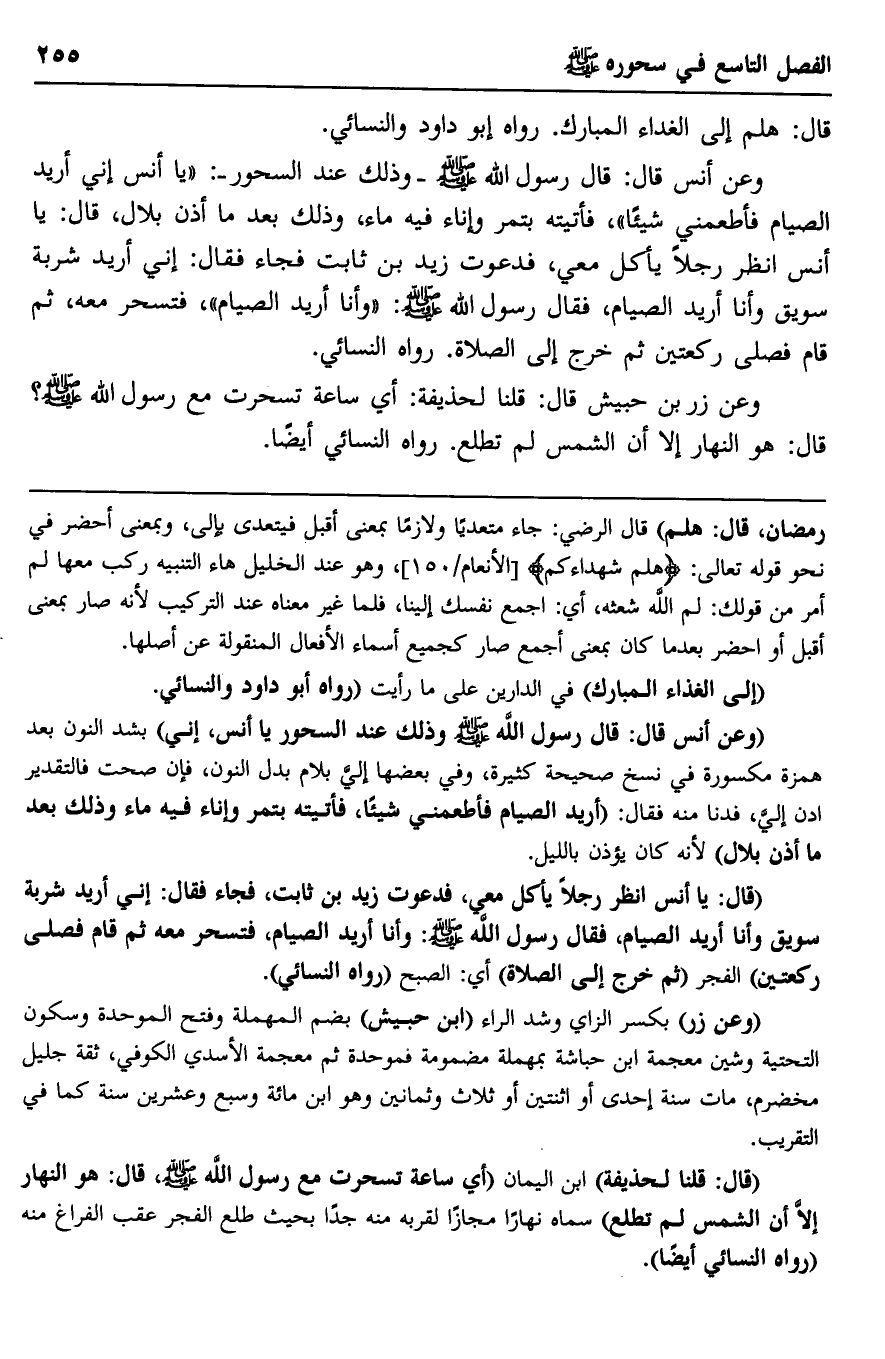 وعن زر بن حبيش قال: قلنا لحذيفة: أي ساعة تسحرت مع رسول الله -صلى الله عليه وسلم؟ قال: هو النهار إلا أن الشمس لم تطلع. رواه النسائي أيضا.
